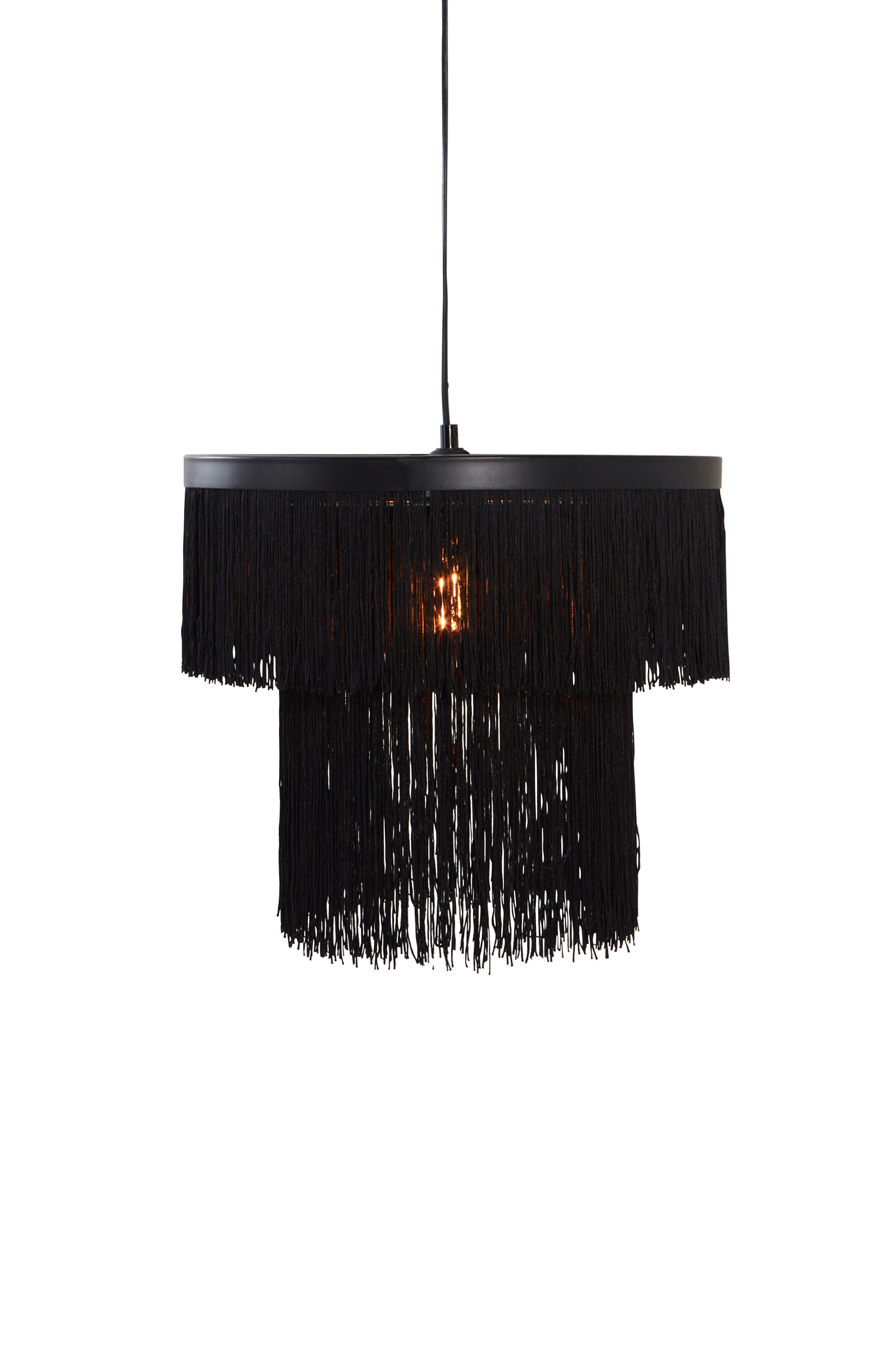 Taklampe med dekorative frynser og skjerm av forkrommet metall. JOSSO er en herlig taklampe som gir et mykt og hjemmekoselig uttrykk i hjemmet.