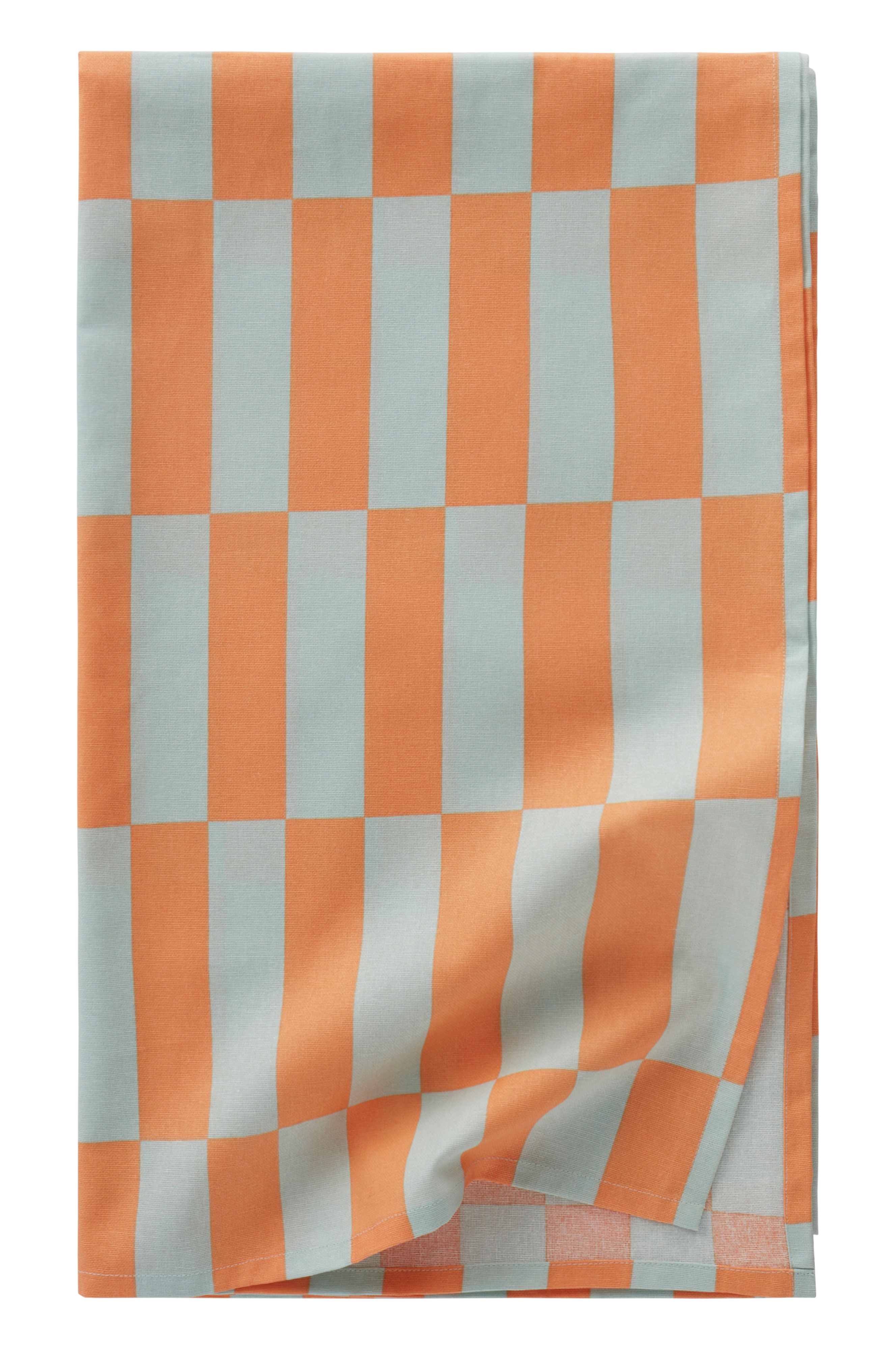 Duk av bomull med trykt stripemønster som danner ruter i kontrastrike farger. Stoffet har vannavvisende akrylbehandling som gjør duken lett å tørke av. Perfekt til saftselskapet i hagen. Stoffets gramvekt er 170 g/m².