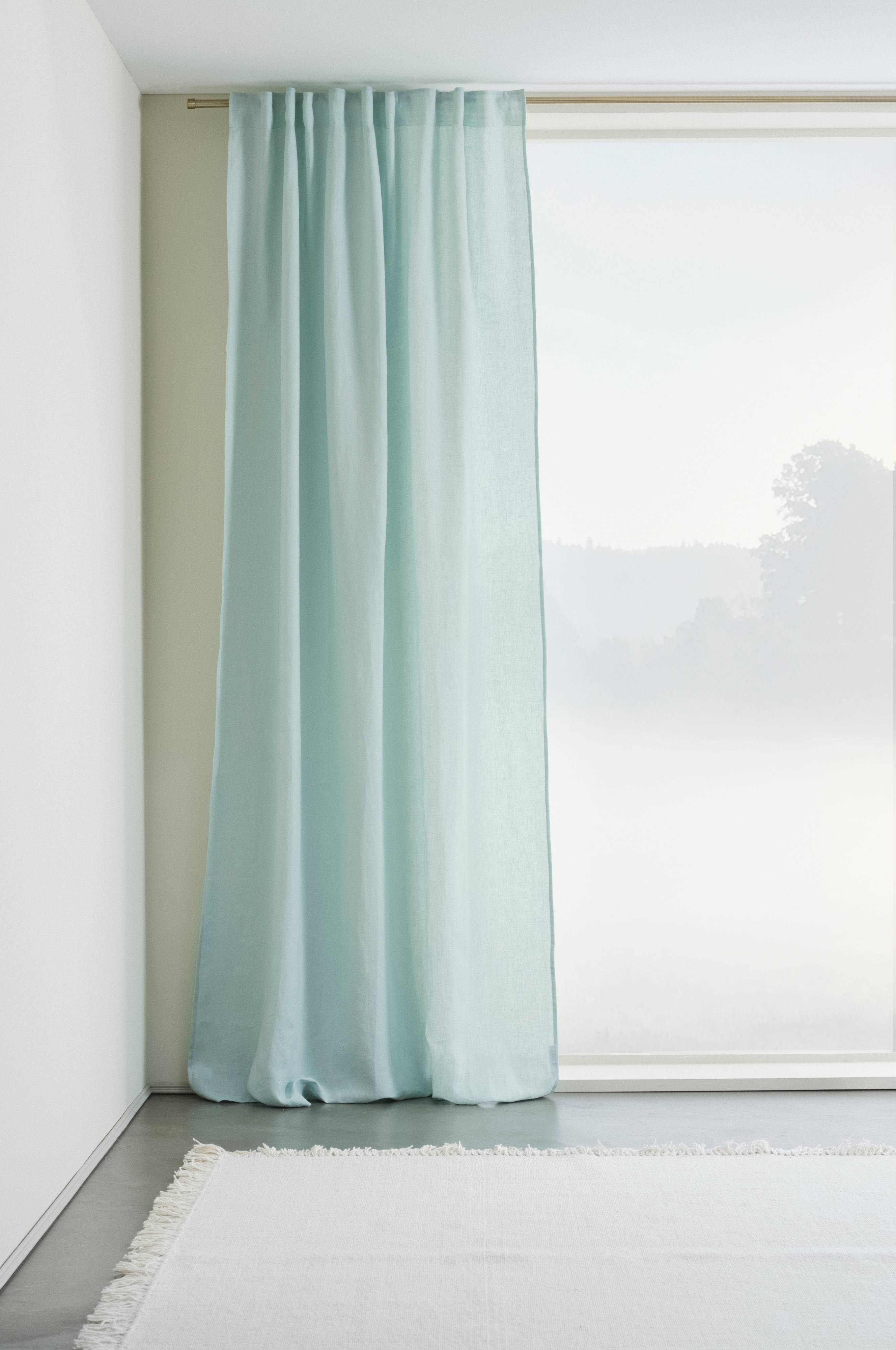 En gardinlengde i myk, smidig lin kvalitet som sammen med linets fine egenskaper også er vannavvisende. Linet er sertifisert med europeisk lin. En akrylatbehandling som verken kan sees eller føles, gir stoffet vannavvisende egenskaper, noe som gir det et bredere bruksområde, både ute og inne. Lengdene har påsydde multifunksjonelle stropper og kan henges opp med fingerkroker, kanal eller skjult oppheng.