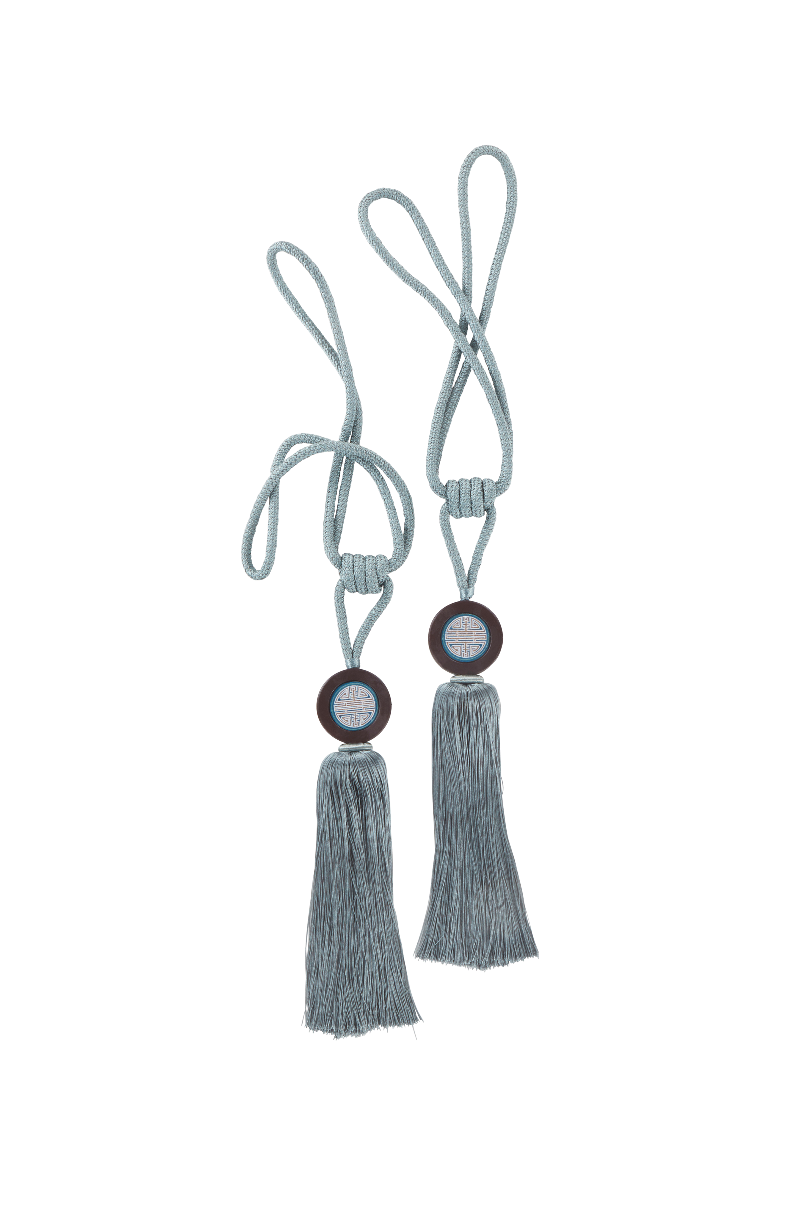 2-pk gardinbånd av polyester. Båndene har en stilfull dusk som er dekorert med en fin trelignende dekor med asiatiske influenser.