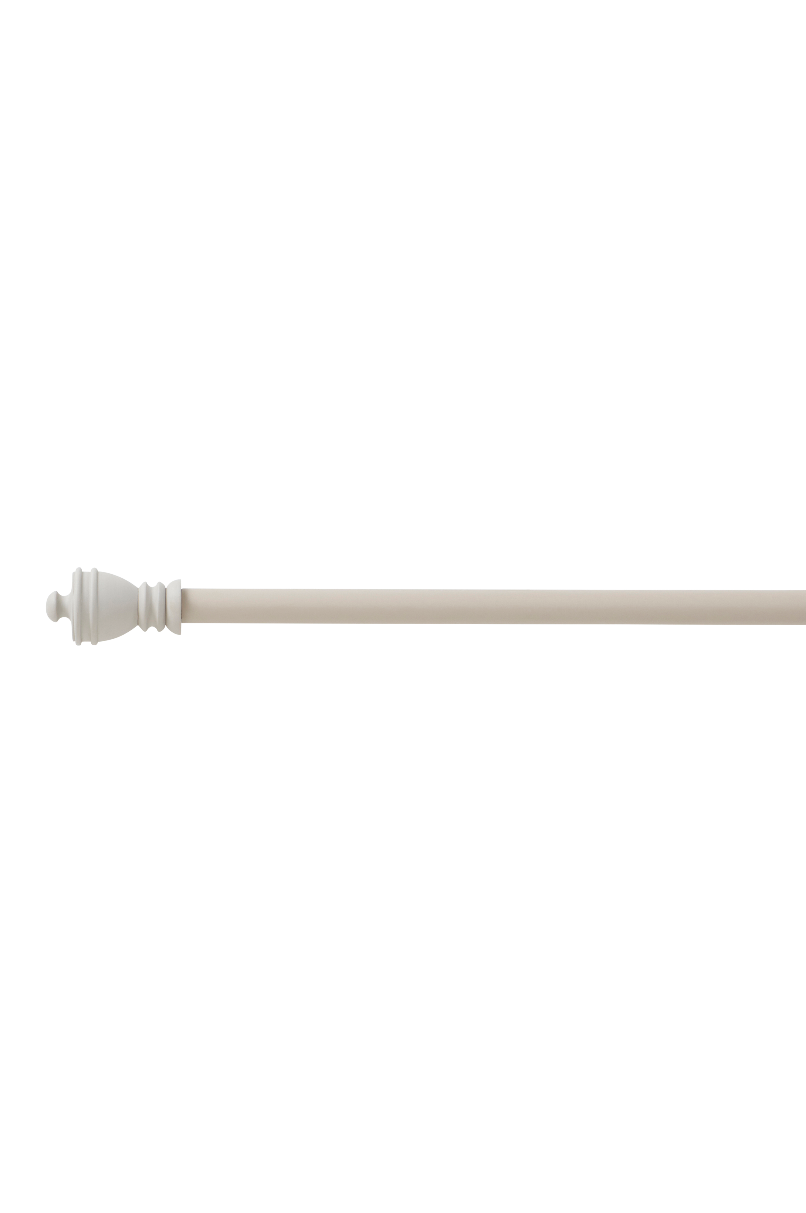 Stang i metall med endedekor. Regulerbar 67-180 cm. Ø 16/19 mm. Veggfester og skruer inngår. Veggavstand ca 10 cm. Dekor i tre, lengde 8,5 cm.