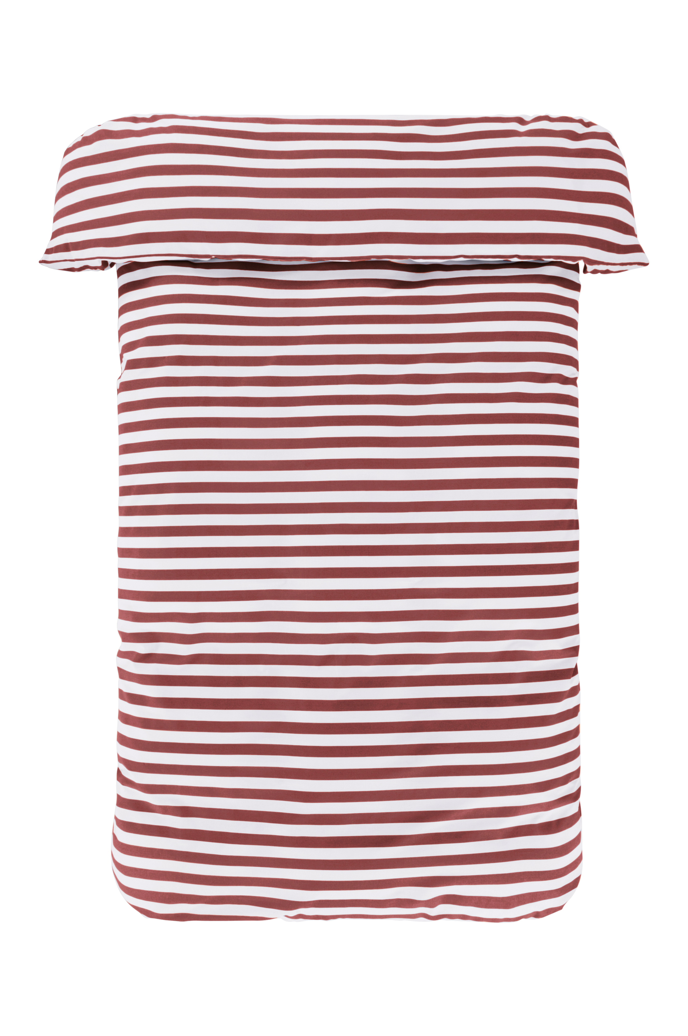 Stripete dynetrekk av bomull. De tverrgående stripene er trykt i friske, sommerlige farger og på begge sider. Bomull er en myk og behagelig kvalitet som føles sval mot huden. Trådtetthet på 144 tc. (Trådtettheten forteller om antallet tråder, thread counts, pr. kvadrattomme i et stoff. Jo høyere trådtetthet, desto høyere kvalitet. Unntaket er lin som ofte veves løsere for å få den riktige følelsen.)