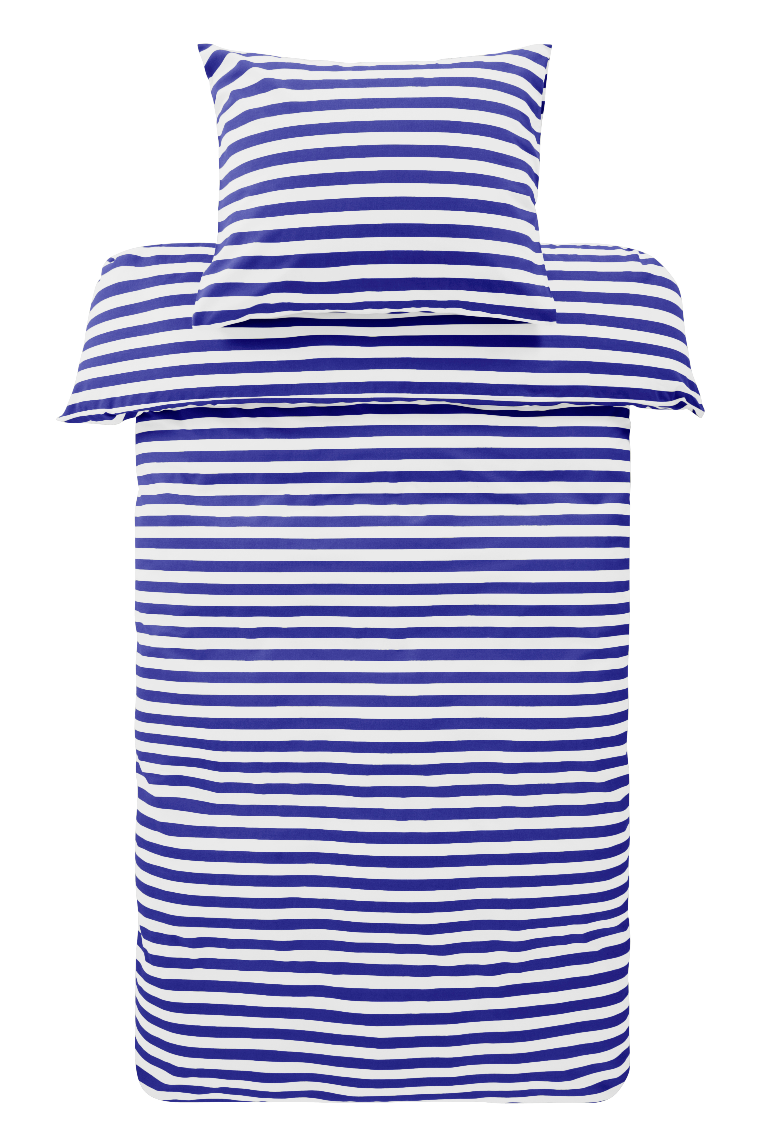 Stripete sengesett i to deler, et dynetrekk og et putevar av bomull. De tverrgående stripene er trykt i friske, sommerlige farger og på begge sider av putevar og dynetrekk. Bomull er en myk og behagelig kvalitet som føles sval mot huden. Åpning øverst i hjørnene på dynetrekket. Det gjør det lettere å tre dynetrekket over dynen. Trådtetthet på 144 tc. (Trådtettheten forteller om antallet tråder, thread counts, pr. kvadrattomme i et stoff. Jo høyere trådtetthet, desto høyere kvalitet. Unntaket er lin som ofte veves løsere for å få den riktige følelsen.)