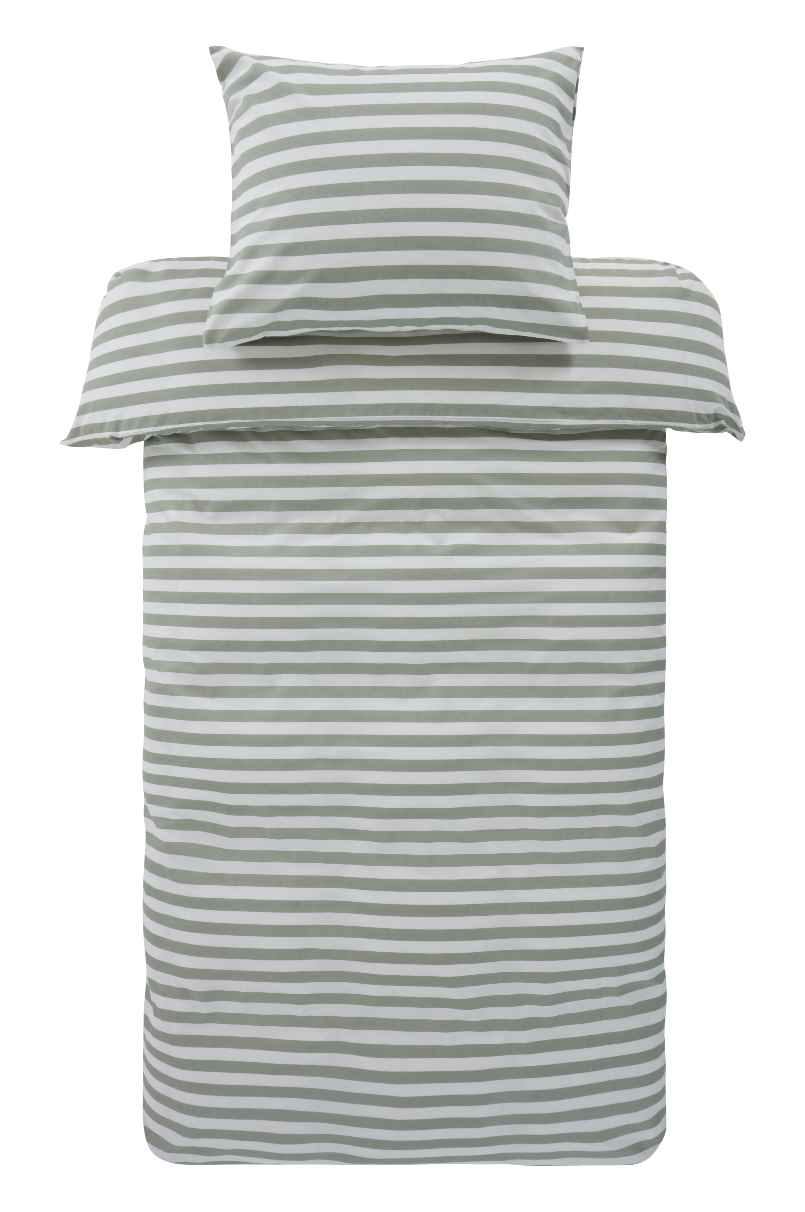 Stripete sengesett i to deler, et dynetrekk og et putevar av bomull. De tverrgående stripene er trykt i friske, sommerlige farger og på begge sider av putevar og dynetrekk. Bomull er en myk og behagelig kvalitet som føles sval mot huden. Åpning øverst i hjørnene på dynetrekket. Det gjør det lettere å tre dynetrekket over dynen. Trådtetthet på 144 tc. (Trådtettheten forteller om antallet tråder, thread counts, pr. kvadrattomme i et stoff. Jo høyere trådtetthet, desto høyere kvalitet. Unntaket er lin som ofte veves løsere for å få den riktige følelsen.)