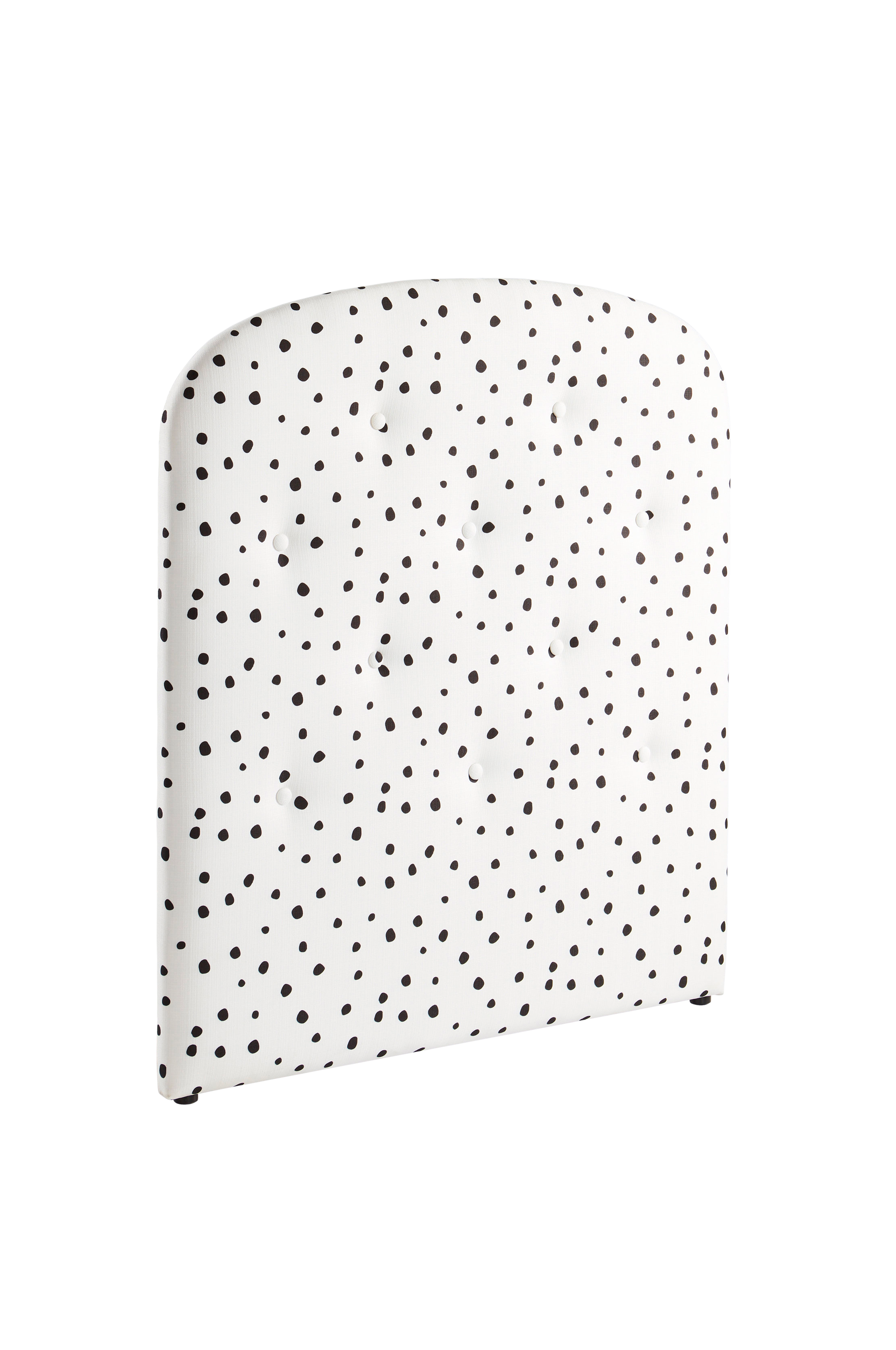Frittstående sengegavl med prikkete trekk og dypt inntrukne, kledde knapper. Passer perfekt for å skape en personlig stil på barnerommet. Stoffet har svært høy slitestyrke med Martindale på 100 000. Veggfester medfølger.