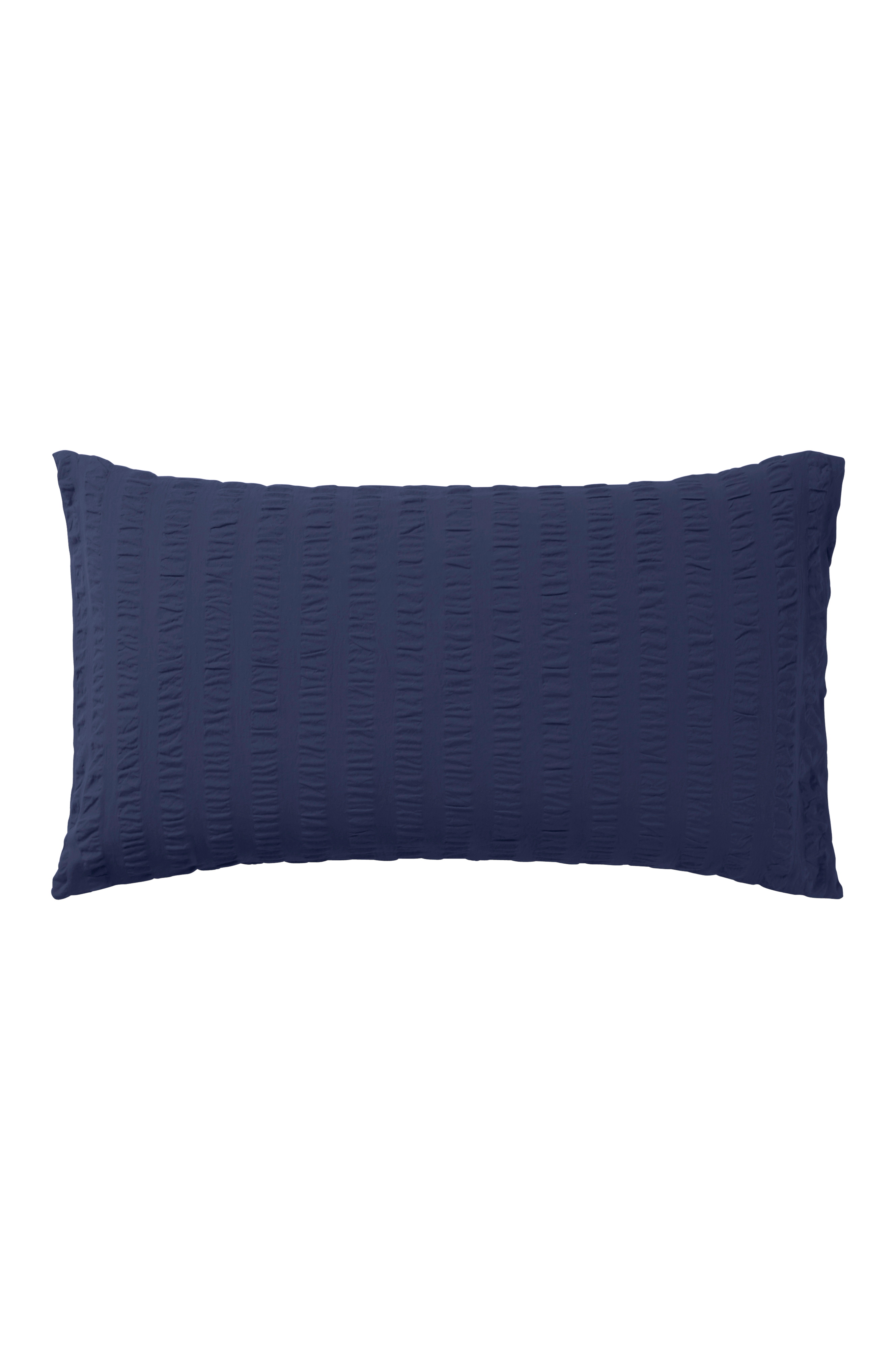 Putevar i herlig krepp av sertifisert, økologisk bomull. Krepp er en luftig kvalitet, og det boblete stoffet føles svalt og har komfortabel pusteevne. Serien KIMMI er ensfarget og samtidig stripete. Annenhver stripe er glatt, vevd stoff og annenhver stripe er i krepp. Stoffet er garnfarget og vasket for å få en mykere følelse. Trådtetthet på 120 tc. (Trådtettheten forteller om antallet tråder, thread counts, pr. kvadrattomme i et stoff. Jo høyere trådtetthet, desto høyere kvalitet.)