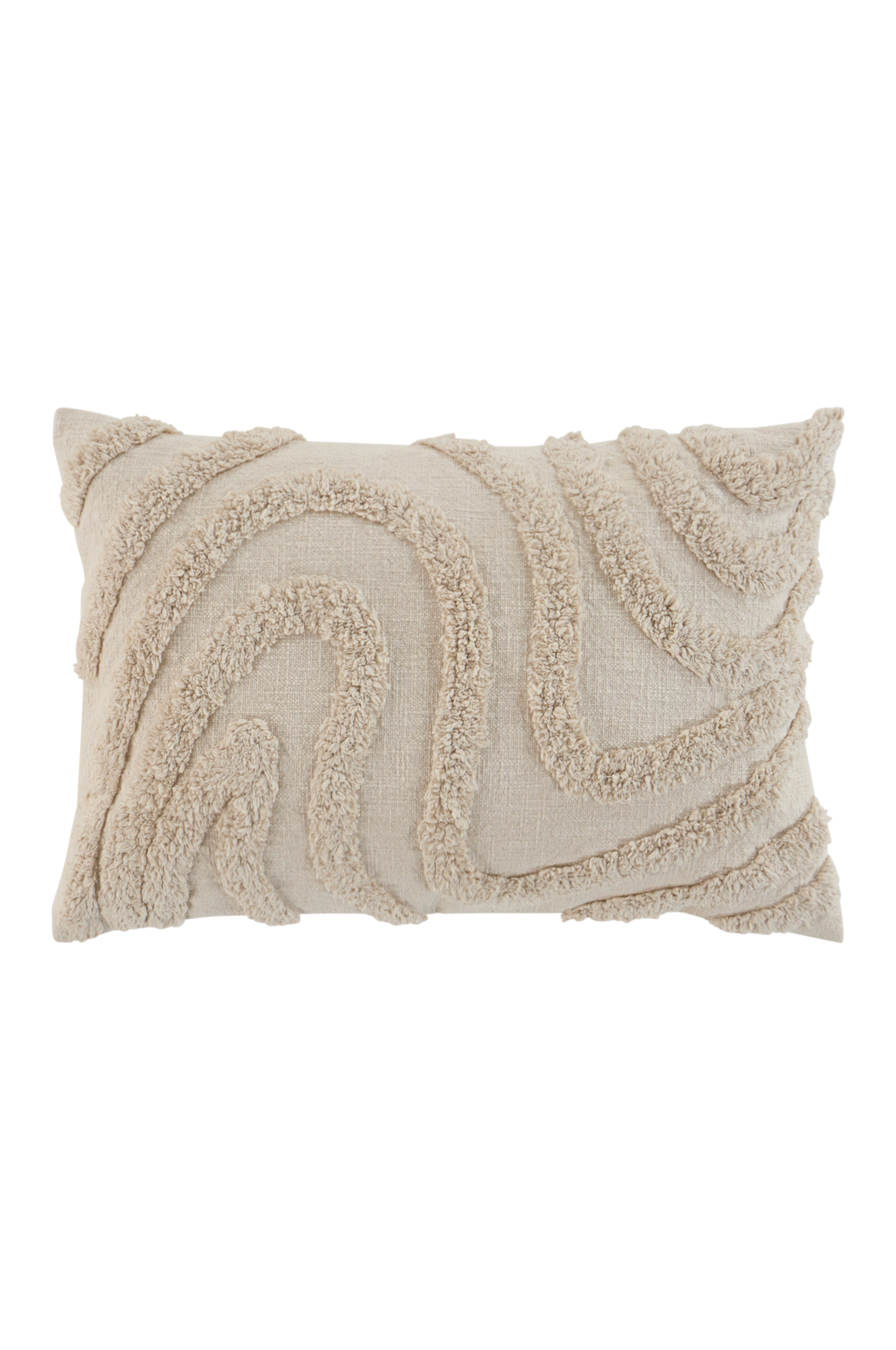 1-pk putetrekk med bølgende mønster som er tuftet slik at mønsteret dannes av kort lugg på et litt grovt stoff med slubbeffekt. Forsiden er mykt fôret. Putetrekket har vevd, naturhvit bakside med skjult glidelås.