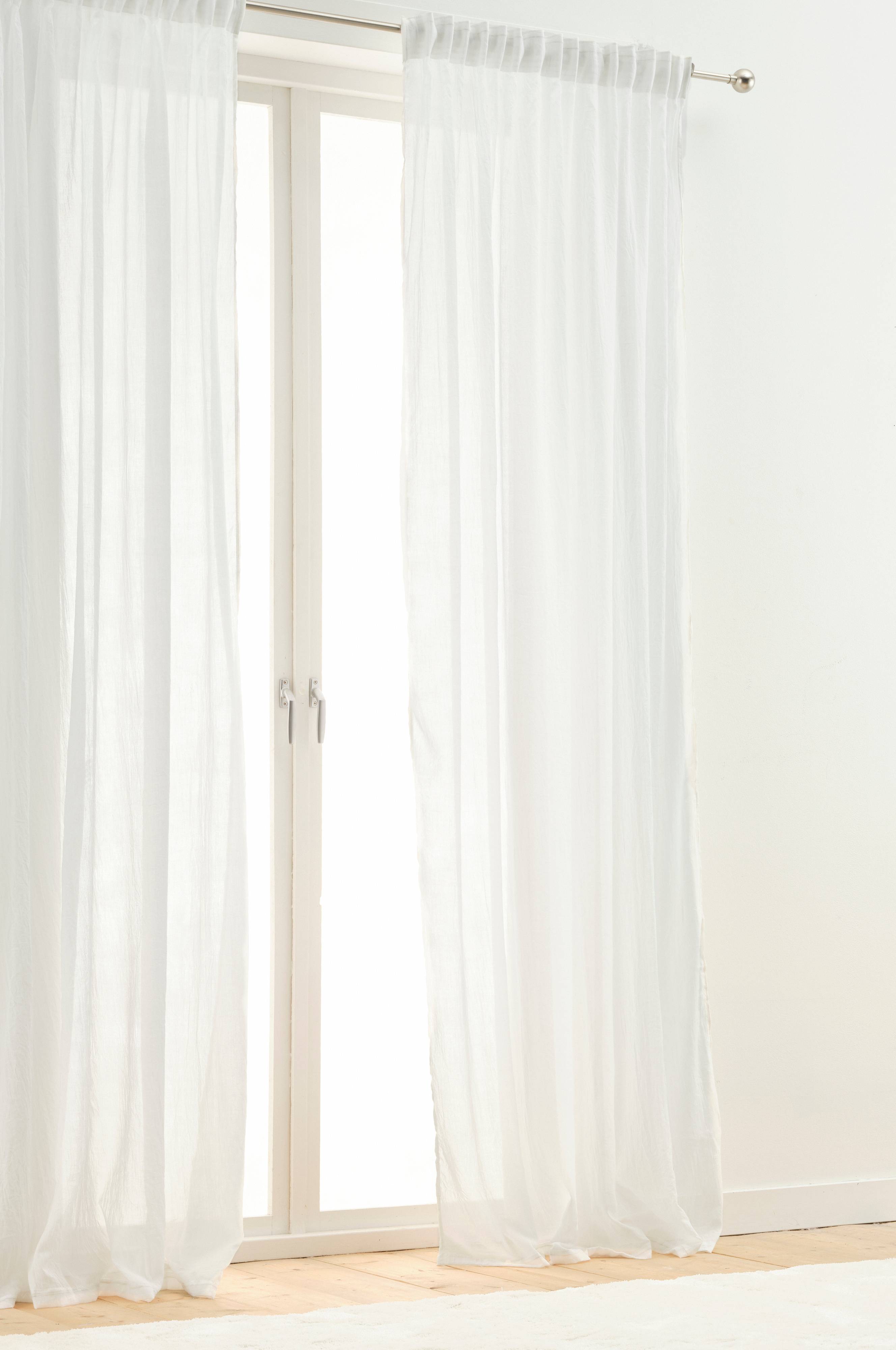To gardinlengder i tynn og luftig kvalitet av polyester/bomull som faller lett. Med påsydd multifunksjonsbånd. Gardinen kan henges opp med fingerkroker, kanal samt skjulte hemper.