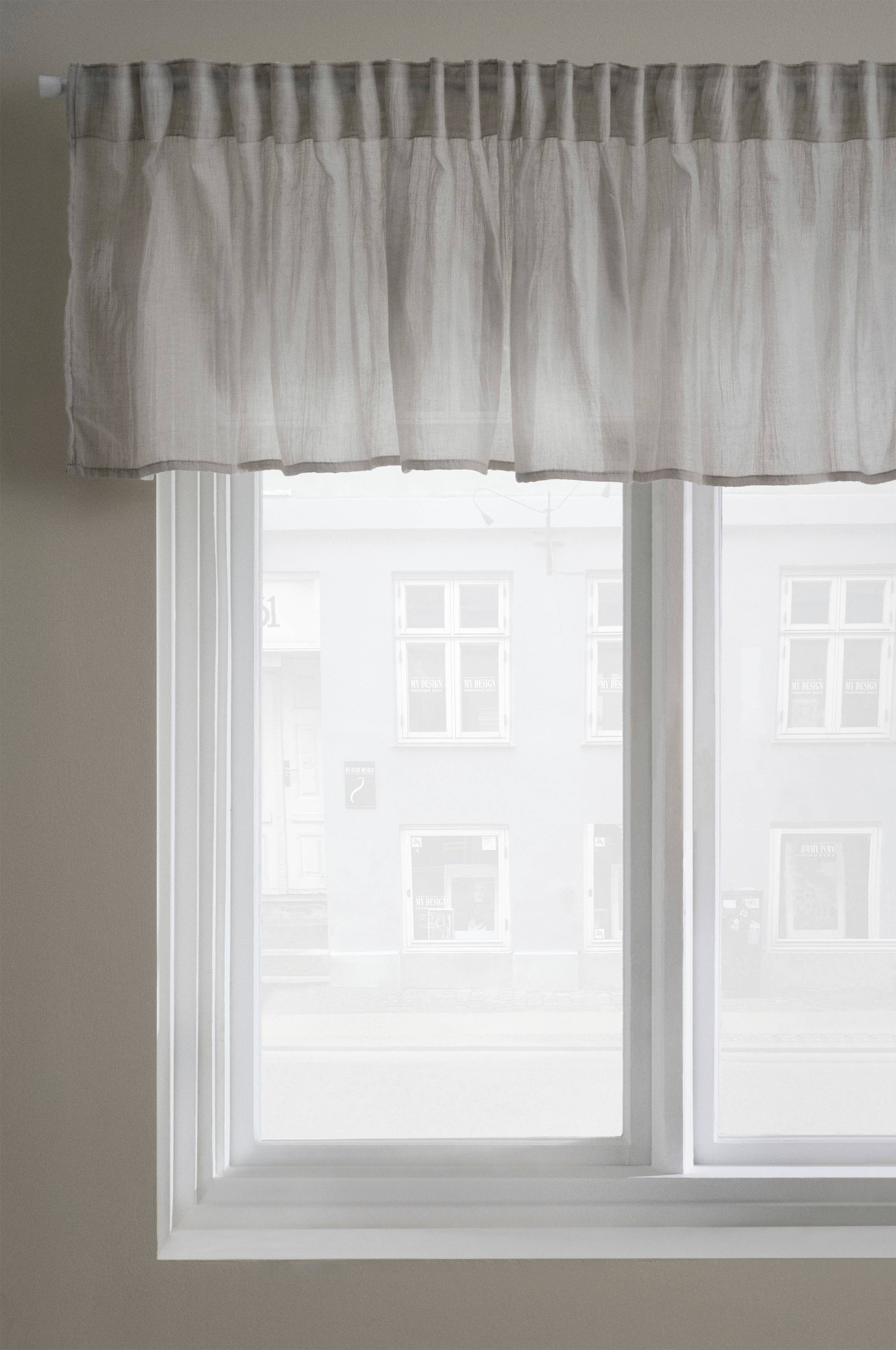 Gardinkappe i tynn og luftig kvalitet av polyester/bomull som faller lett. Kappen har påsydd multifunksjonsbånd øverst, og kan henges opp med fingerkroker, kanal samt skjult hempe.