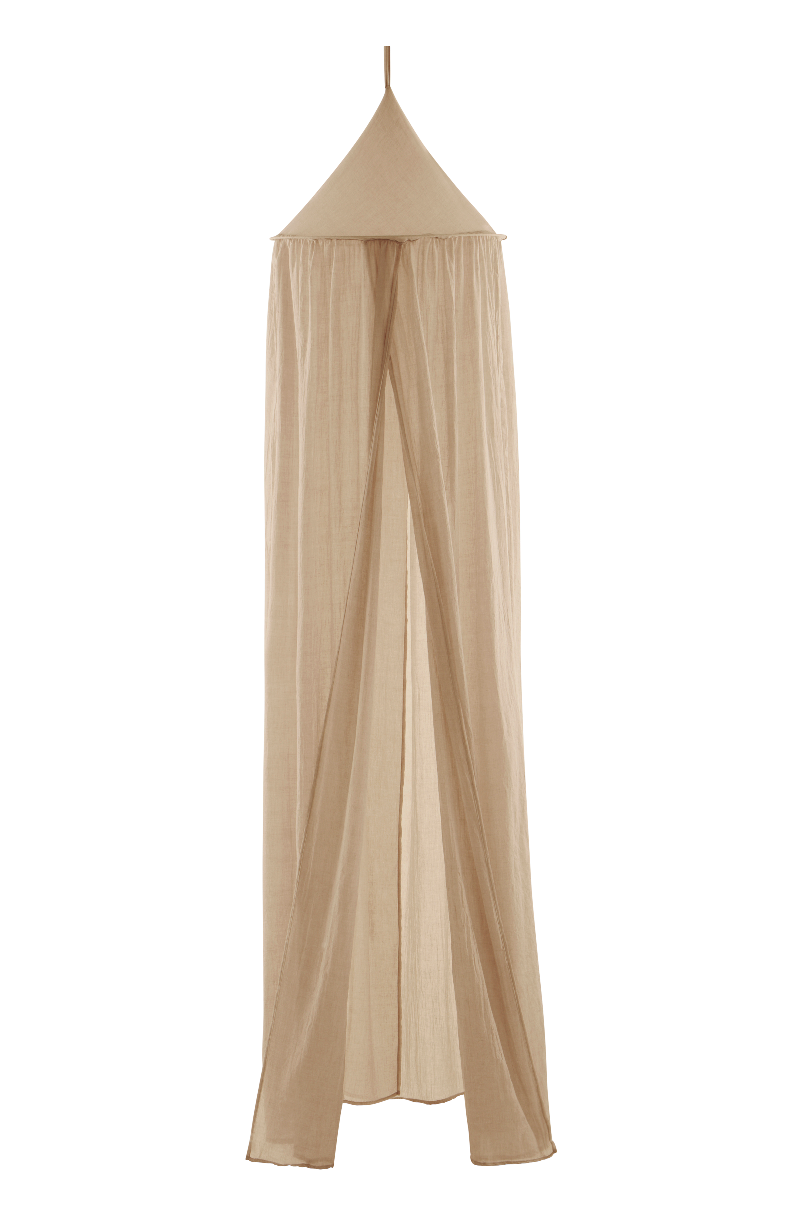 Sengehimmel i tynn og luftig kvalitet av polyester/bomull som faller lett. Metallring øverst som gir fint oppheng, og løkke i toppen for oppheng. Denne sengehimmelen er åpen både i forkant og bakkant, noe som er en fordel hvis du ønsker en sengelampe på veggen bak sengen. Sengehimmelen gjør soveplassen ekstra koselig.