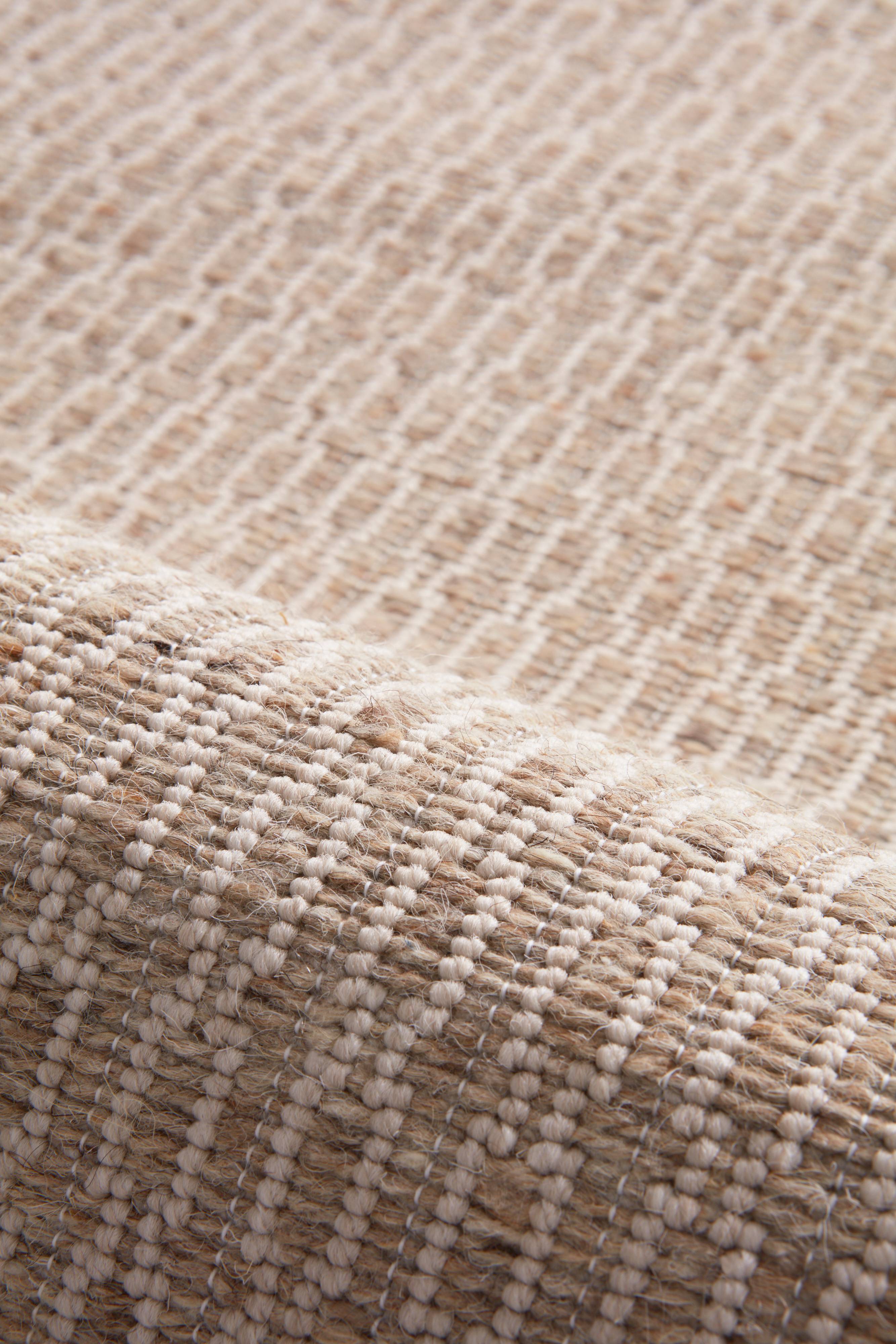 Glattvevd teppe i en blanding av polypropylen, ull og polyester. Teppet har en naturlig look med små detaljer og tekstur som preger teppets stil. Teppet har diskre, vevd mønster som gir en melert karakter på avstand. Tykkelse 0,5 cm. 1450 g/m².
