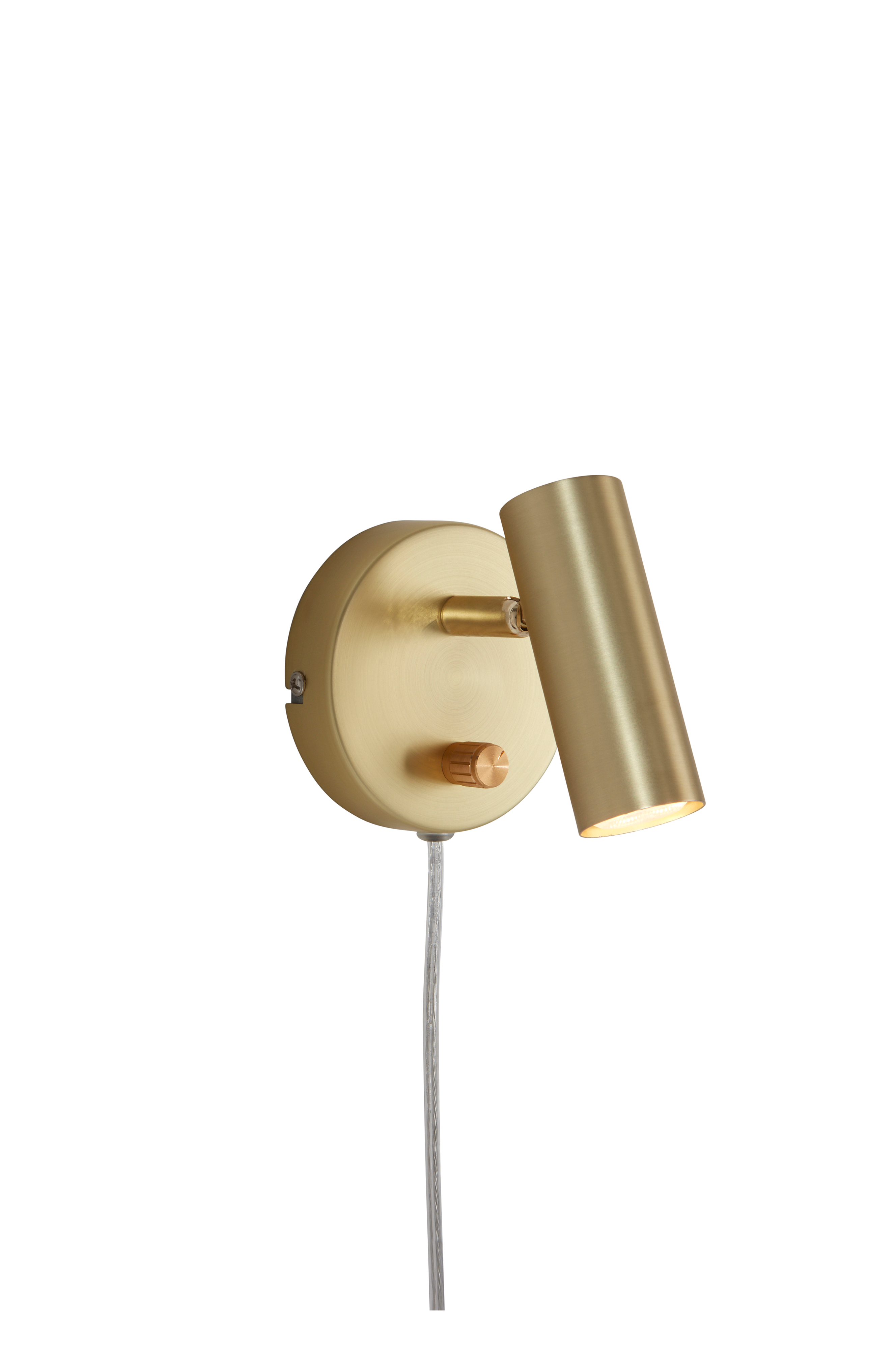Vegglampe i metall inklusive LED-belysning. Justerbart lampehode med dimmer/strømbryter på veggplaten. Ensfarget utside og detaljer i krom. Ledning i plast, 170 cm.