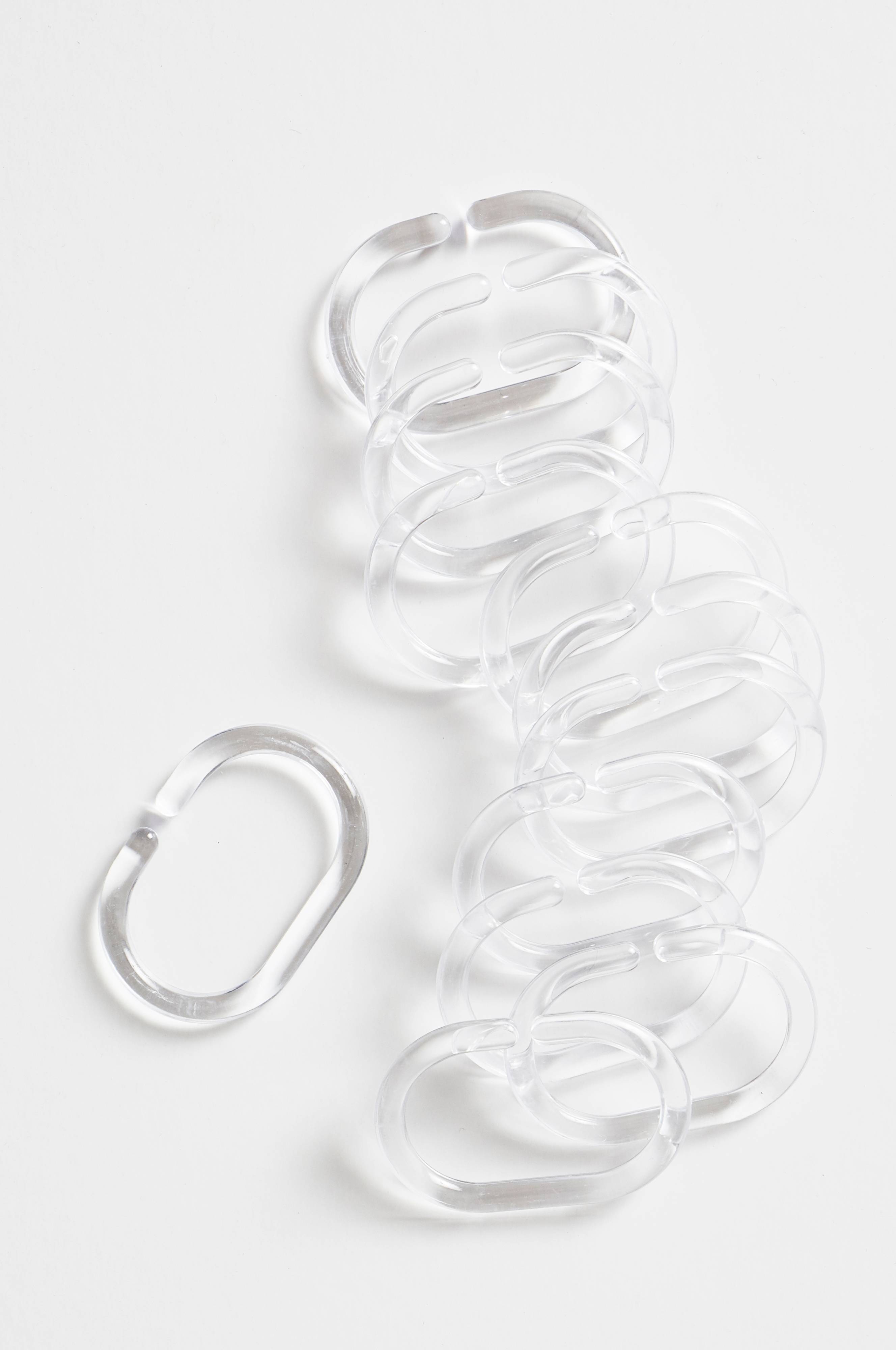 12-pk ringer av plast til dusjforheng. C-formen gjør det enkelt å henge dusjforhenget på stangen.
