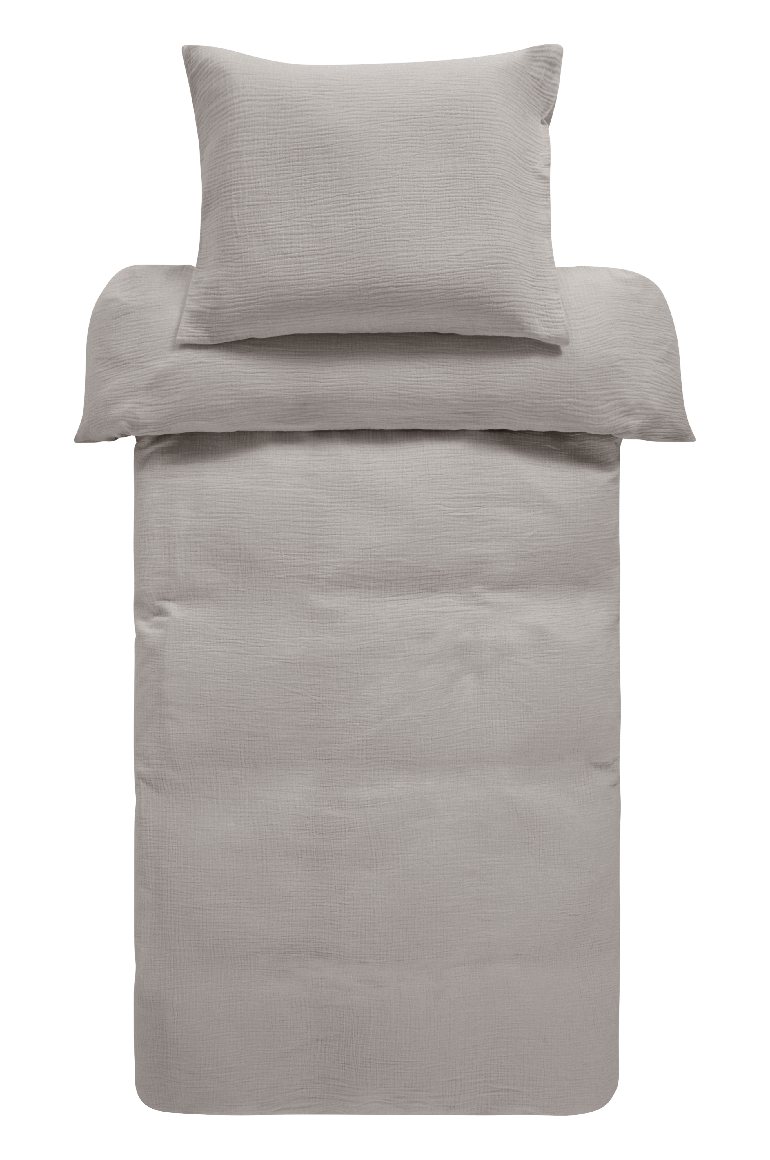 Sengesett i 2 deler i herlig, økologisk bomullsmusselin. Musselin er et mykt stoff, vevd med boblete effekt som gjør stoffet mykt og ekstra lettstelt. Du trenger hverken stryke eller mangle. Det behagelige musselinstoffet er deilig å sove i. Åpning øverst i hjørnene på dynetrekket. Det gjør det lettere å tre dynetrekket over dynen. Trådtetthet på 178 tc. (Trådtettheten forteller om antallet tråder, thread counts, pr. kvadrattomme i et stoff. Jo høyere trådtetthet, desto høyere kvalitet.)