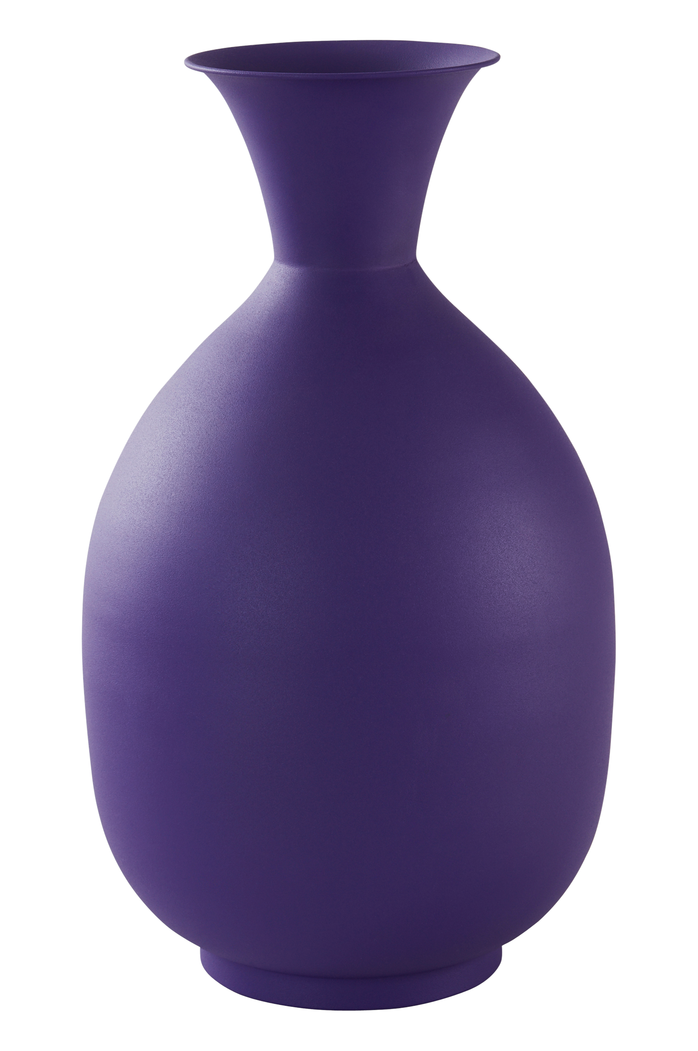 Vase av jern med vakker, dyp lilla farge som er matt. Vasen har tidløs, mykt avrundet form, og er vakker både med og uten blomster. Husk at jern ruster over tid og hvis overflaten skades.