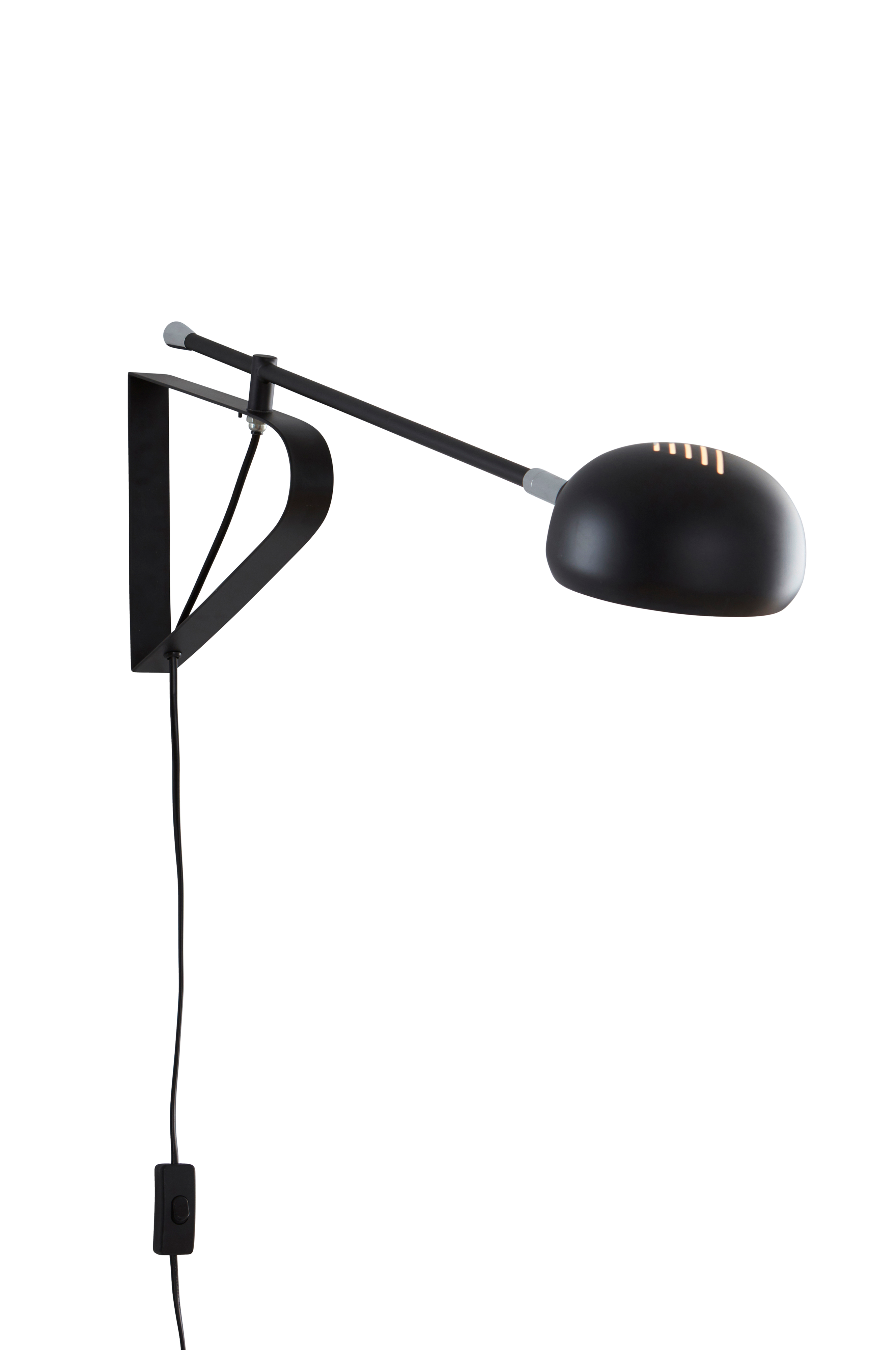 Vegglampe i metall med kromfargede detaljer. Fleksibel modell med vribar arm og stillbar skjerm slik at du kan få lyset der du ønsker. Funksjonelt over sofaen når du vil ha en regulerbar leselampe, eller over arbeidsplassen. Svart ledning, lengde 1,5 m.