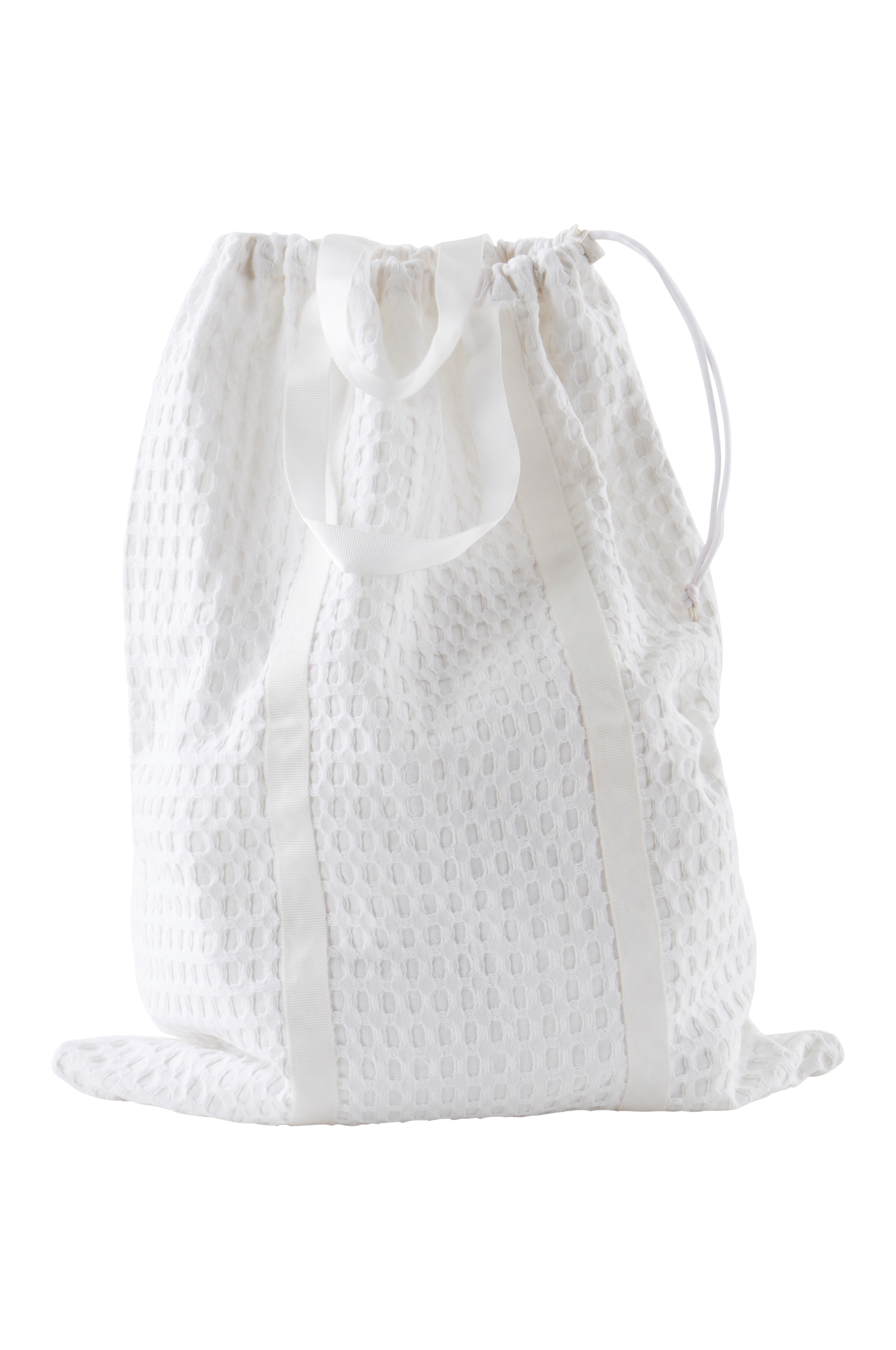 Vaskepose av bomull med vevd vaffeleffekt, praktisk og hensiktsmessig for skittentøyet. Den fine vaskeposen har snøring øverst og to håndtak til å bære med. Vaskeposen er ekstra praktisk for deg som må gå et stykke til vaskerommet. Vaskeposen har fordelen av at den alltid er passe stor. Er den tom, tar den liten plass. Praktisk å ha på badet og soverommet, men også i campingvognen eller hvorfor ikke på reisen?