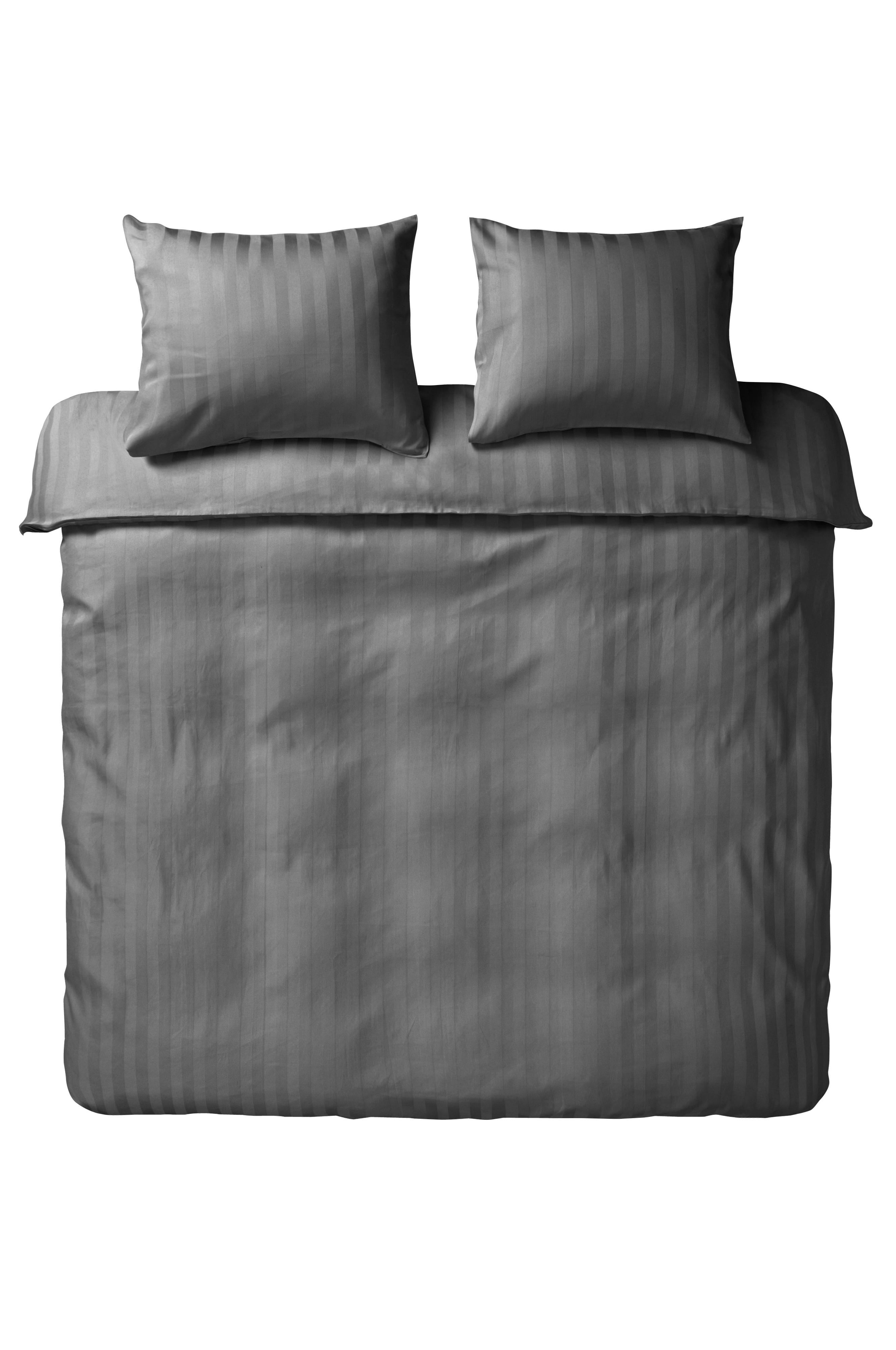 Ensfarget sengesett i 3 deler i sateng av bomull med vevde striper ton-i-ton. Sateng er en veveteknikk som gir et herlig glatt og mykt stoff. Bomull som veves med denne teknikken blir til et stoff med fin glans og luksuriøs følelse. Åpning øverst i hjørnene på dynetrekket. Trådtetthet på 215 tc. (Trådtettheten forteller om antallet tråder, thread counts, pr. kvadrattomme i et stoff. Jo høyere trådtetthet, desto høyere kvalitet).