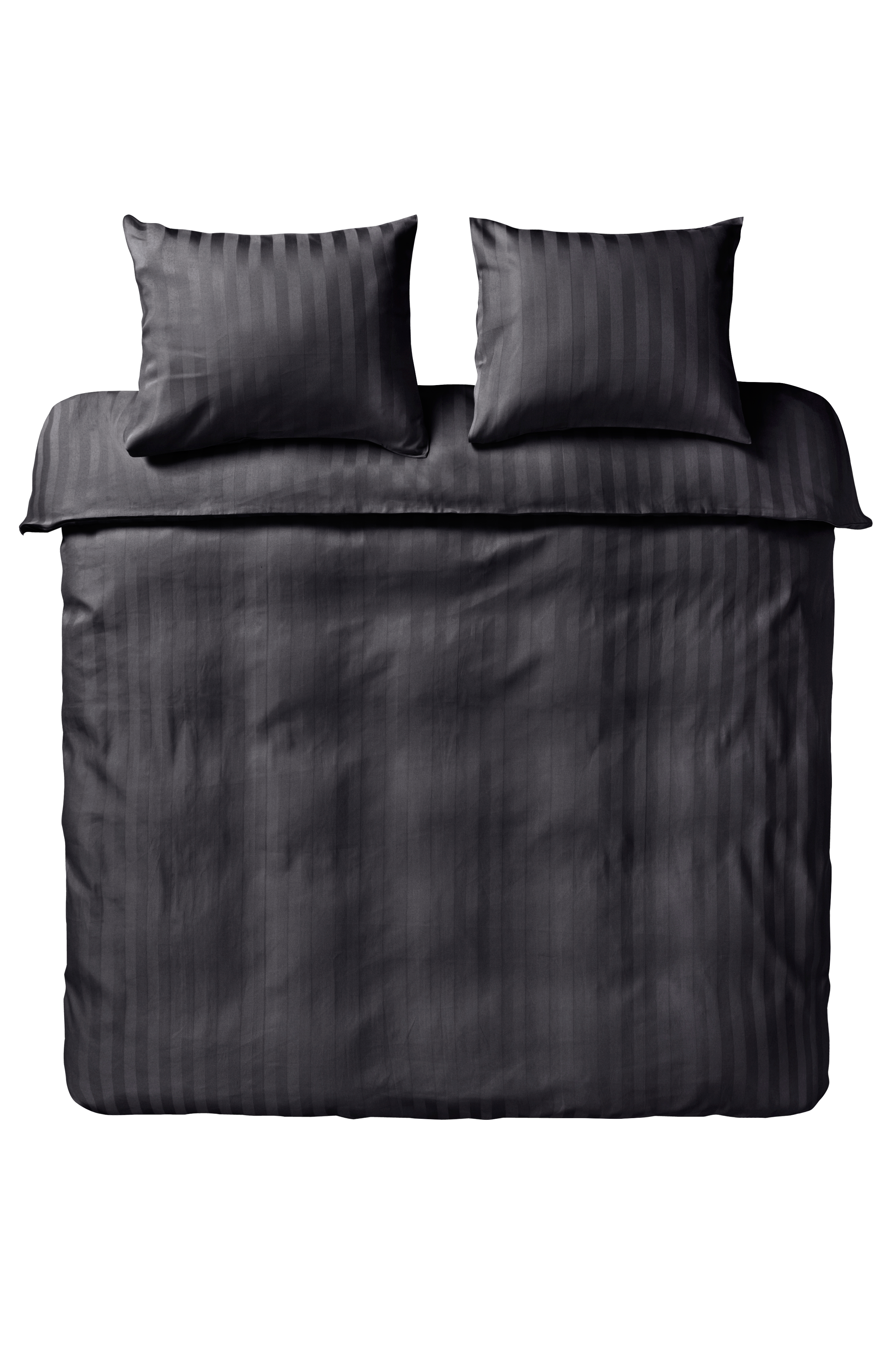 Ensfarget sengesett i 3 deler i sateng av bomull med vevde striper ton-i-ton. Sateng er en veveteknikk som gir et herlig glatt og mykt stoff. Bomull som veves med denne teknikken blir til et stoff med fin glans og luksuriøs følelse. Åpning øverst i hjørnene på dynetrekket. Trådtetthet på 215 tc. (Trådtettheten forteller om antallet tråder, thread counts, pr. kvadrattomme i et stoff. Jo høyere trådtetthet, desto høyere kvalitet).