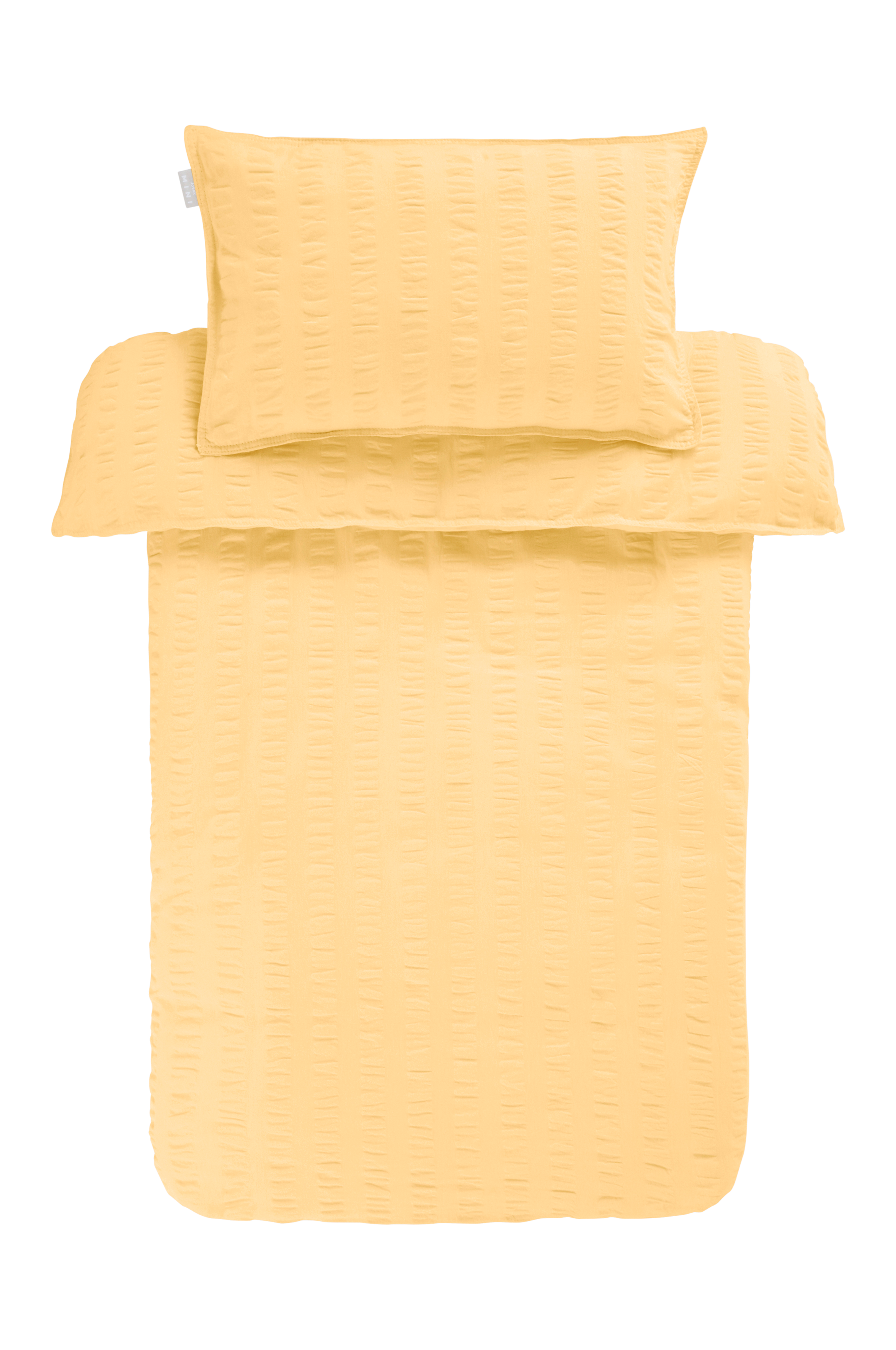 Sengesett med et dynetrekk og et putevar i herlig krepp av sertifisert, økologisk bomull. Settet passer fint til sprinkelseng. Krepp er en luftig kvalitet, og det boblete stoffet føles svalt og har komfortabel pusteevne. Serien LOLO er ensfarget og samtidig stripete, glattvevd stoff veksles med striper i krepp. Stoffet er garnfarget og vasket for å få en mykere følelse. Trådtetthet på 120 tc. (Trådtettheten forteller om antallet tråder, thread counts, pr. kvadrattomme i et stoff. Jo høyere trådtetthet, desto høyere kvalitet.)
