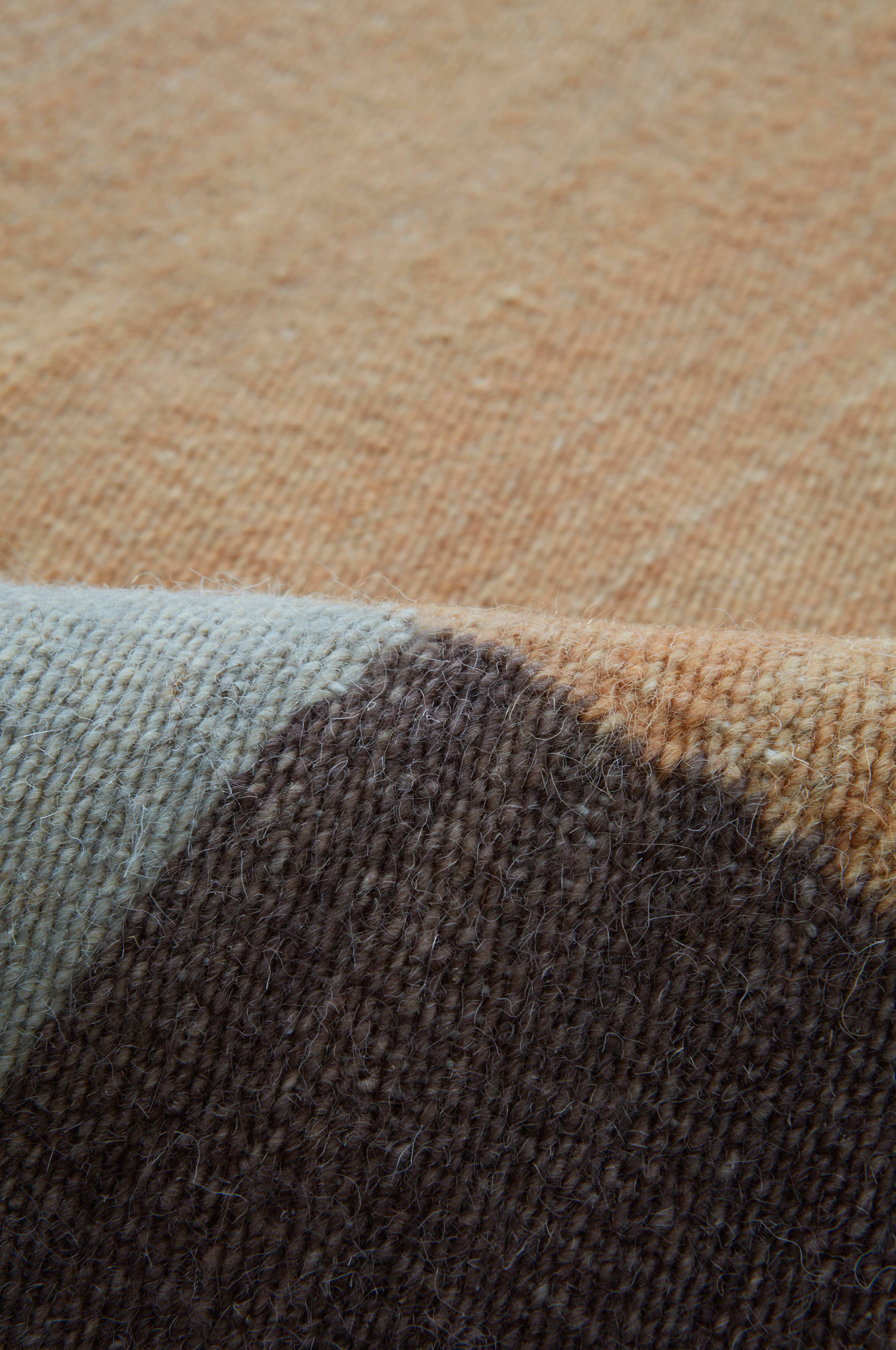 Håndvevd ullteppe i komfortabel og varm kvalitet med litt bomull. I serien LORI BLOCK finner du ulltepper med strenge geometriske mønstre skapt av firkanter i kontrastrikt fargevalg. Ull er et naturlig materiale som varmer deilig, og er helt perfekt for deg som har litt kalde gulv hjemme. Ull er dessuten et praktisk valg siden ull er naturlig smussavvisende. Teppene i serie LORI har frynser langs kortsidene. Frynser 8-10 cm. Tykkelse 0,5 cm. 1000 g/m².