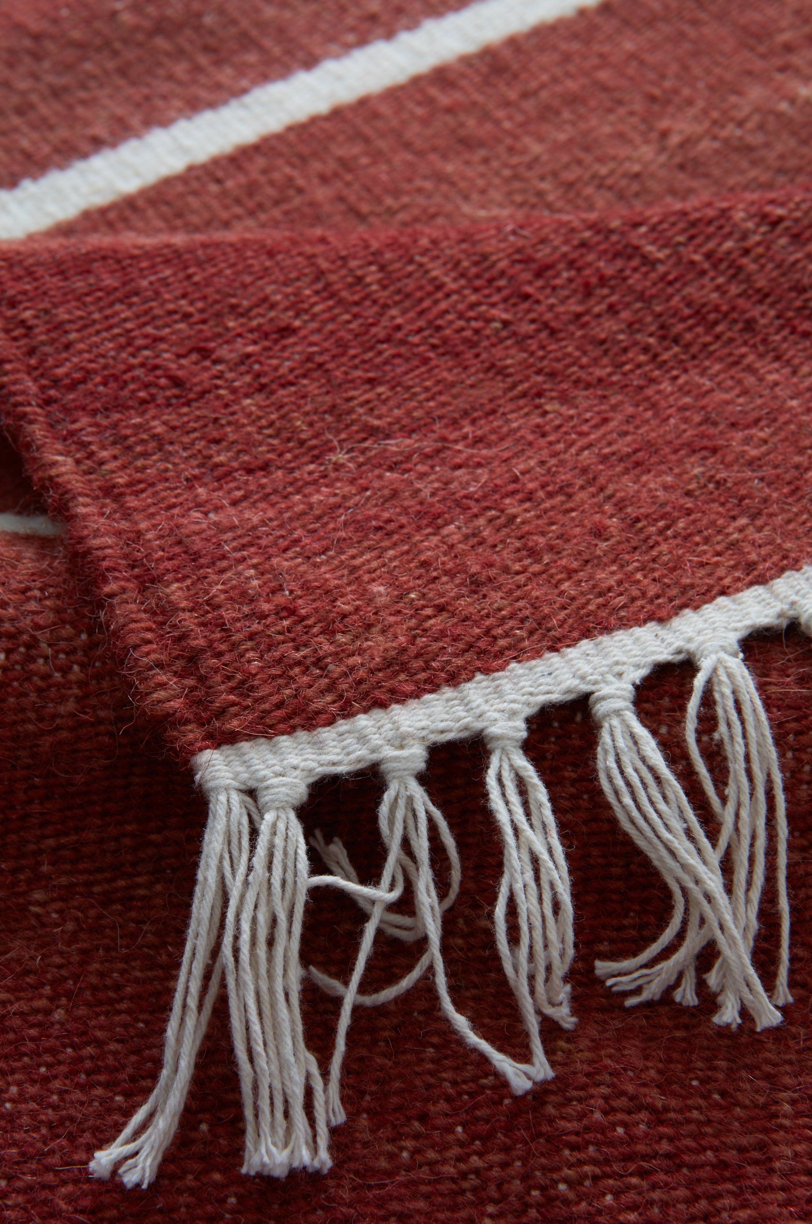Håndvevd ullteppe i komfortabel og varm kvalitet med litt bomull. I serie LORI STRIPE finner du ulltepper med stripemønster i kontrastrikt fargevalg. Ull er et naturlig materiale som varmer deilig, og er helt perfekt for deg som har litt kalde gulv hjemme. Ull er dessuten et praktisk valg siden ull er naturlig smussavvisende. Teppene i serie LORI har frynser langs kortsidene. Frynser 8-10 cm. Tykkelse 0,5 cm. 1000 g/m².