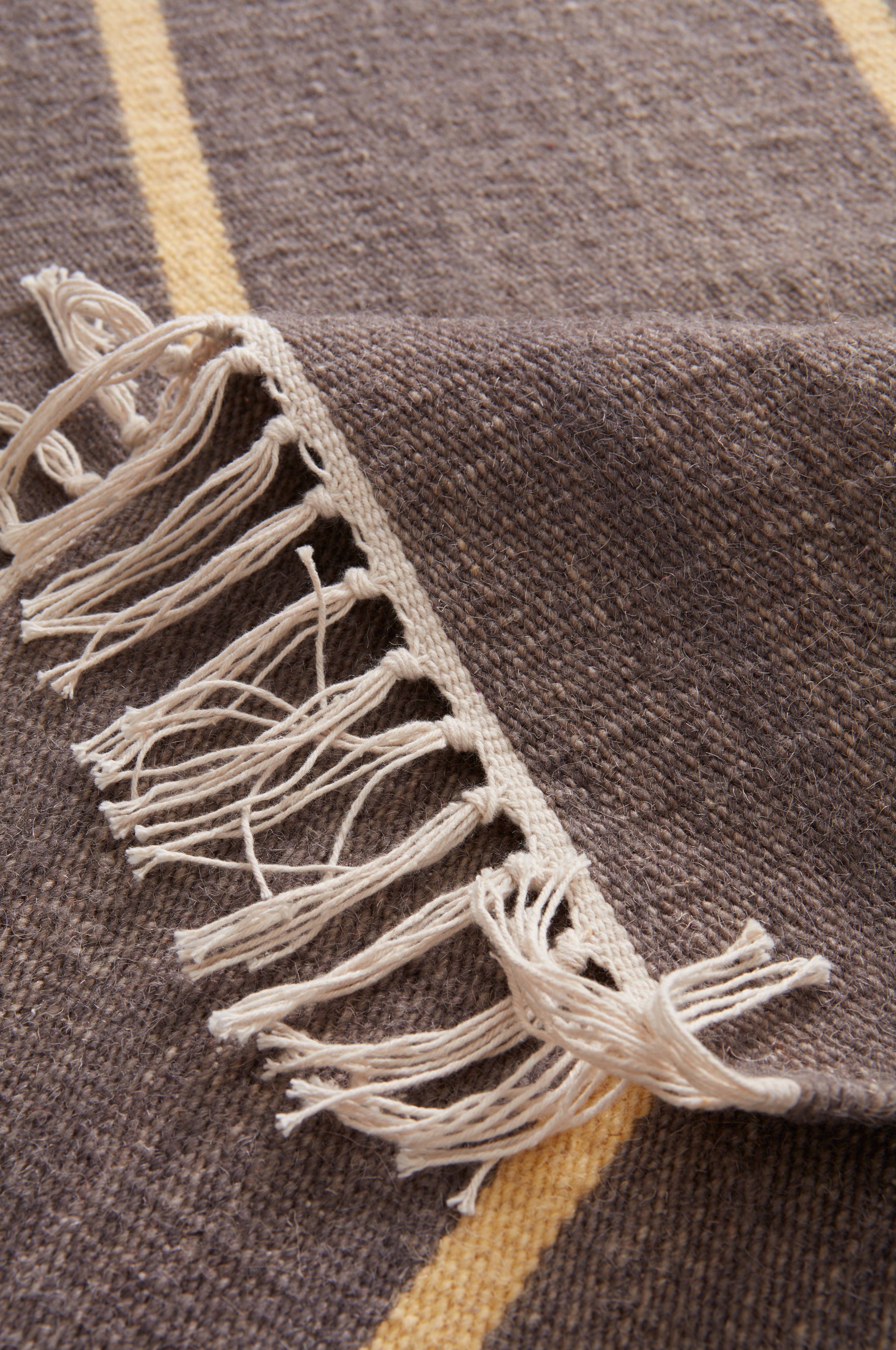 Håndvevd ullteppe i komfortabel og varm kvalitet med litt bomull. I serie LORI STRIPE finner du ulltepper med stripemønster i kontrastrikt fargevalg. Ull er et naturlig materiale som varmer deilig, og er helt perfekt for deg som har litt kalde gulv hjemme. Ull er dessuten et praktisk valg siden ull er naturlig smussavvisende. Teppene i serie LORI har frynser langs kortsidene. Frynser 8-10 cm. Tykkelse 0,5 cm. 1000 g/m².
