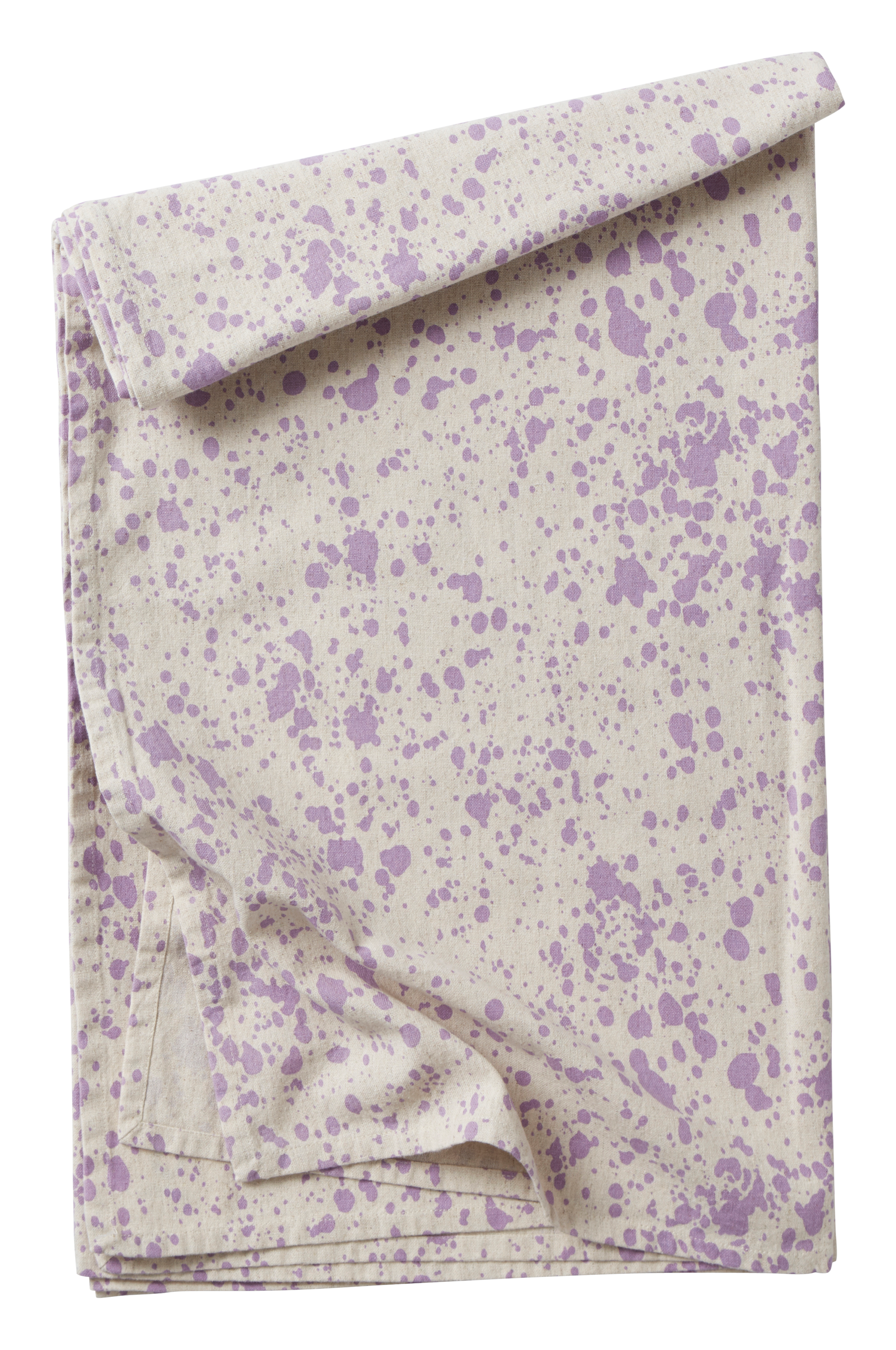 Duk i bomullsblanding med iblandet lin som gir stoffet fasthet. Duket har trykt flekkmønster som både er kvikt og fresht.