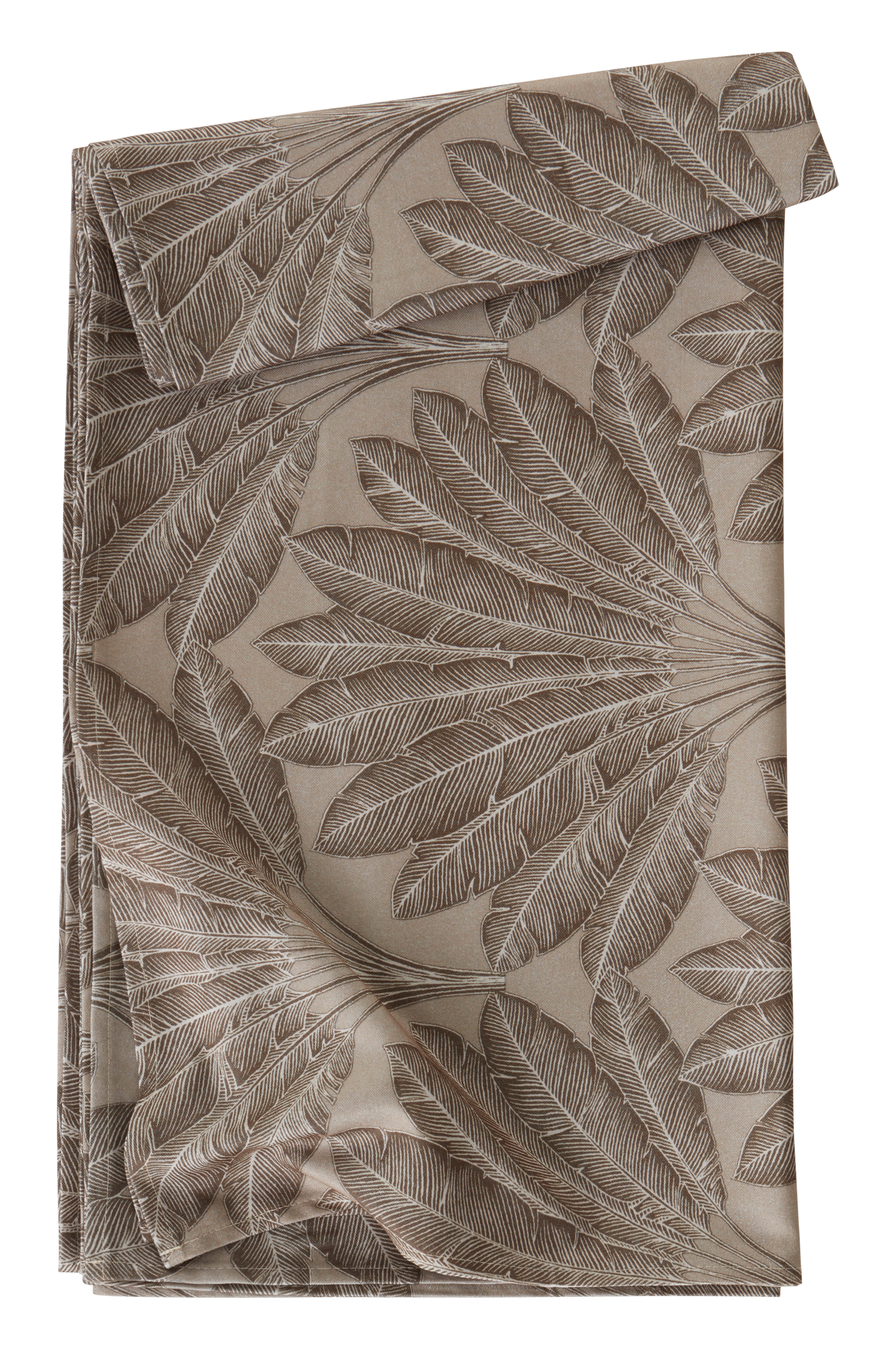 Rektangulær duk av polyester med suverent mønstertrykk skapt av fjær. Trykket går i en mørkere nyanse enn bunnfargen, og mønsteret oser både spenning og harmoni med et anstrøk av retro.