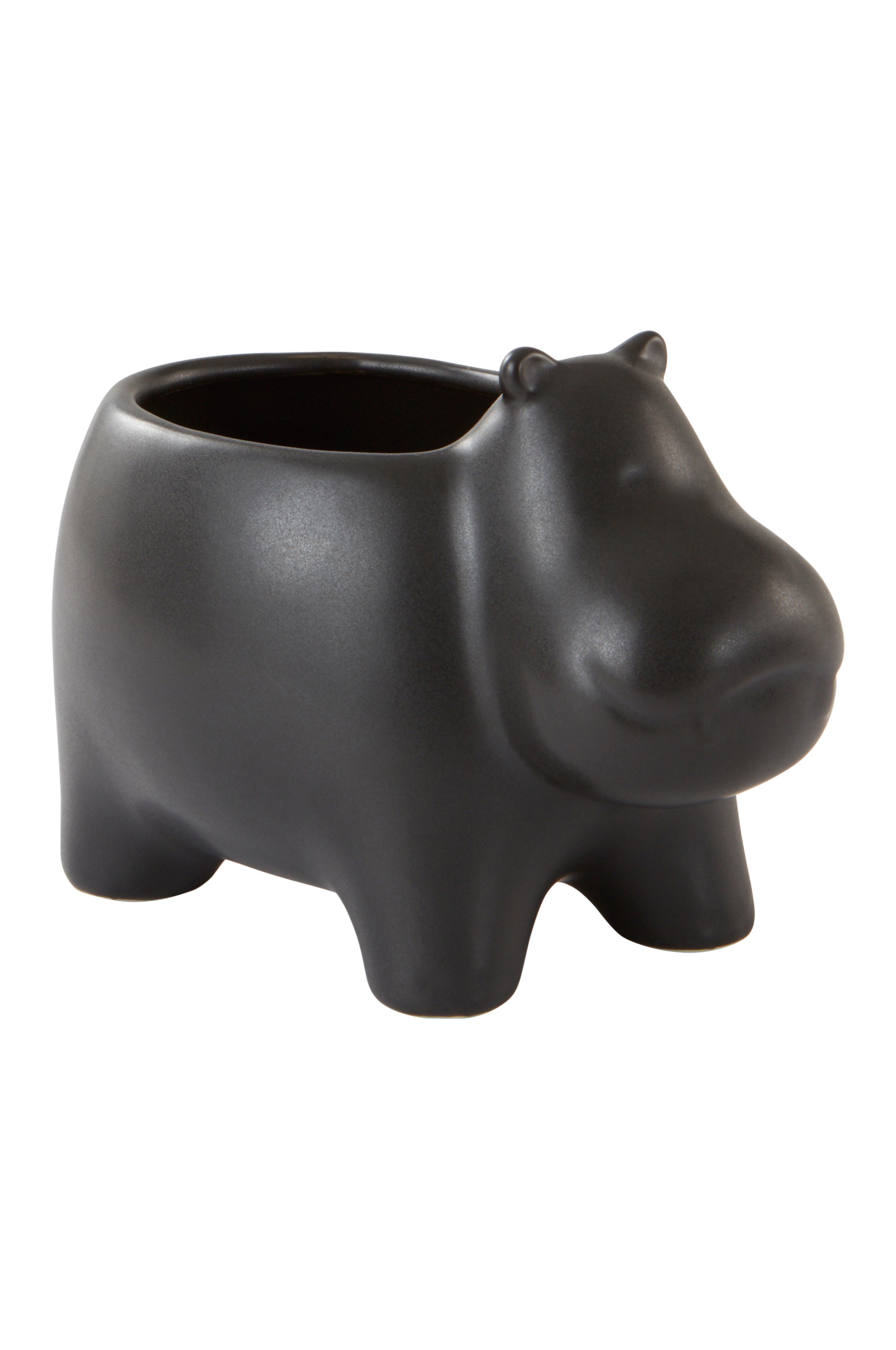 Håndlaget minipotte av porselen med matt glasur. Den søte flodhesten gjør seg fint med en liten plante i. Den passer selvsagt også utmerket til småting.