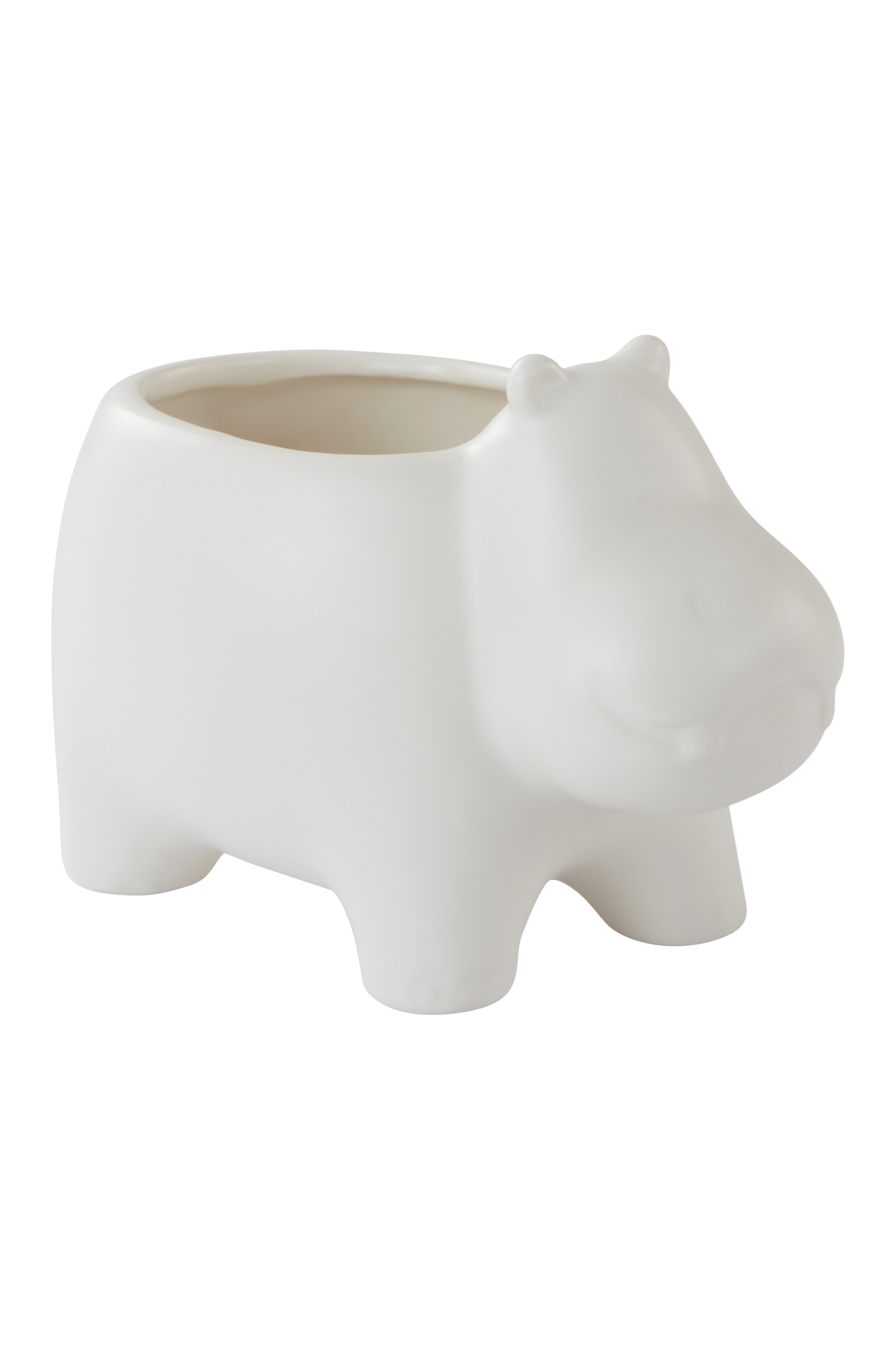 Håndlaget minipotte av porselen med matt glasur. Den søte flodhesten gjør seg fint med en liten plante i. Den passer selvsagt også utmerket til småting.