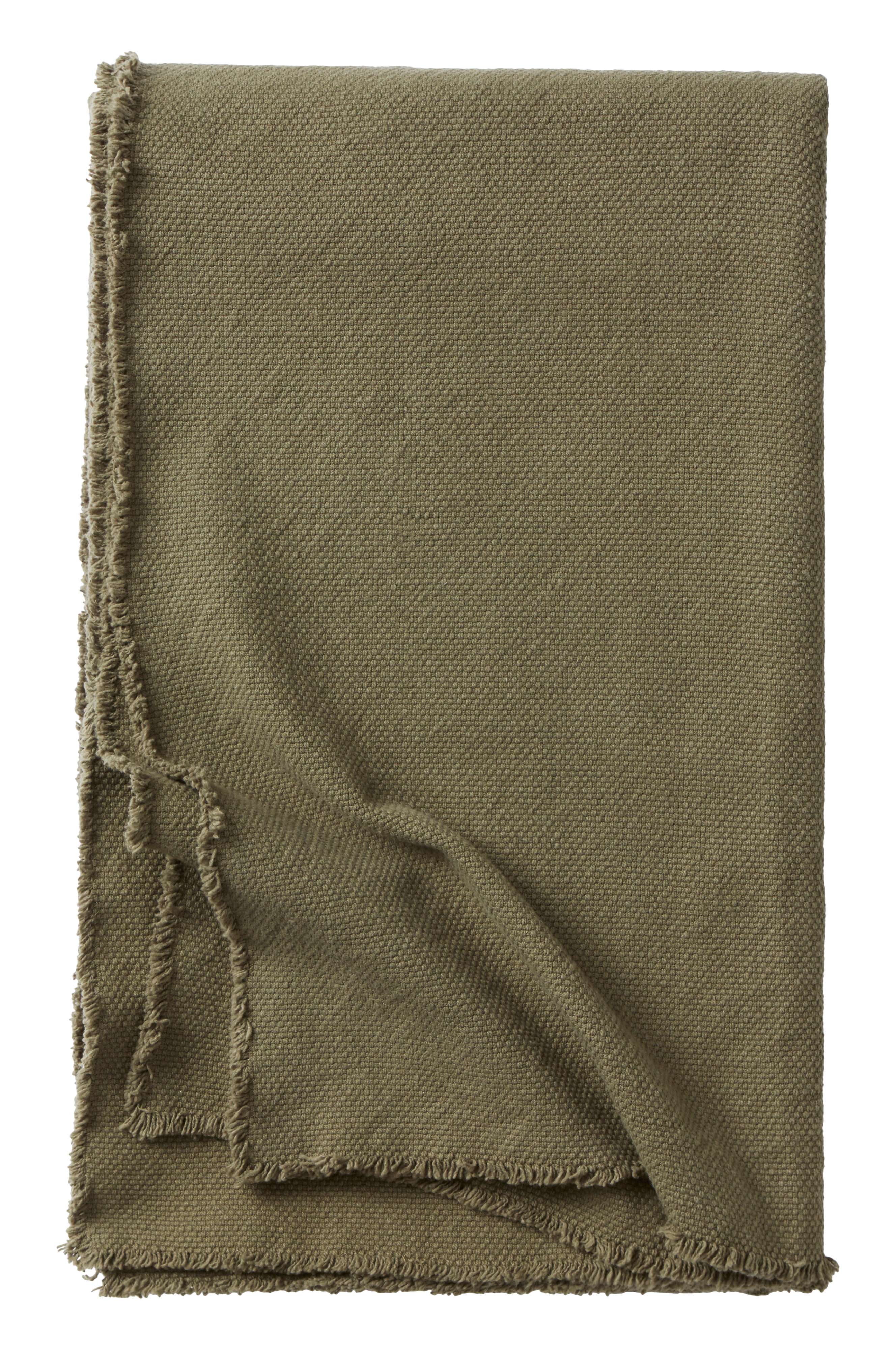 Duk av bomull som vevd i et litt grovt stoff. Duken har rå frynsekant rundt. Stoffet gir en rustikk følelse, og passer både landlige stiler og i moderne hvor det kan skape kontrast. Stoffet er plaggvasket. Det betyr at det er vasket før søm slik at kvaliteten blir ekstra behagelig og myk.