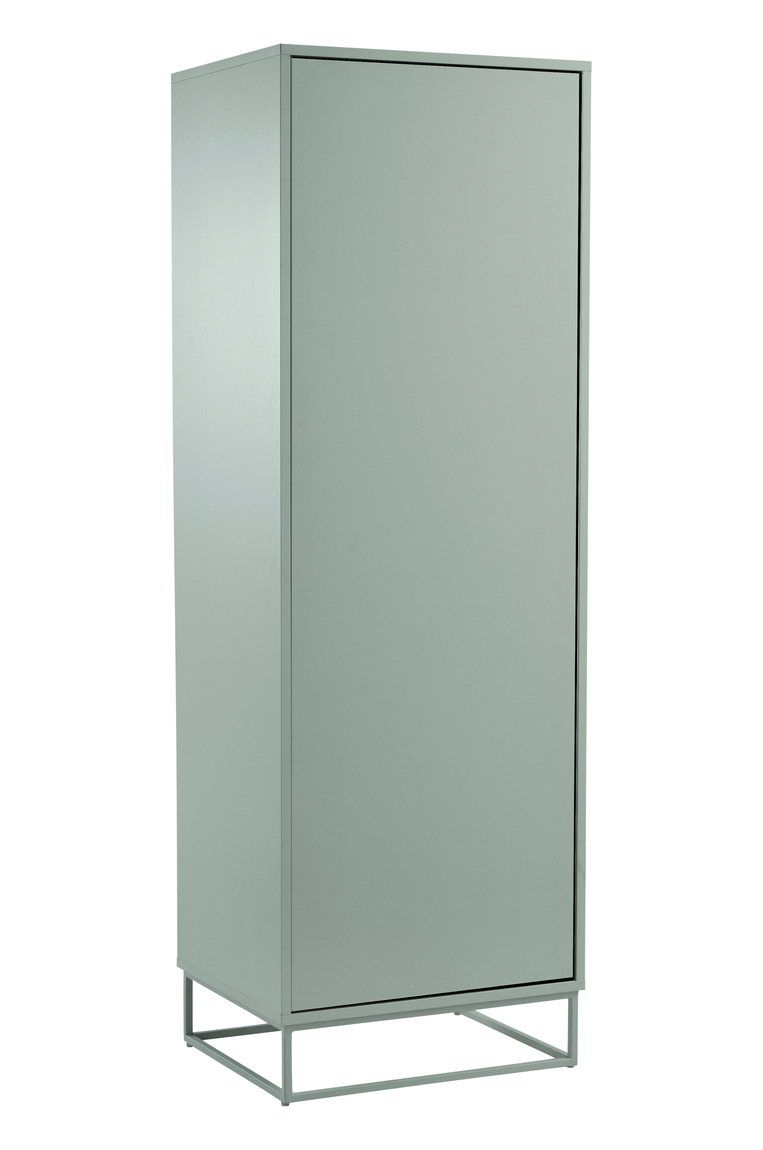 Garderobeskap av MDF med understell av metall. Den nedtonede og stilrene garderoben har en dør med pushfunksjon. Det gjør at garderoben er helt glatt uten håndtak og likevel lett å åpne. Garderoben har klesstang av massiv bøk og én fast hylle. Døren er venstrehengt. Du kan selv bytte side slik at døren blir høyrehengt, men merk at du da får hull på venstre side. Delene av MDF har vannbasert lakk. Understellet er av firkantprofil med pulverlakkering. Veggfestet gjør at skapet kan festes i veggen ved behov. Noe montering kreves. Monteringsanvisning medfølger.