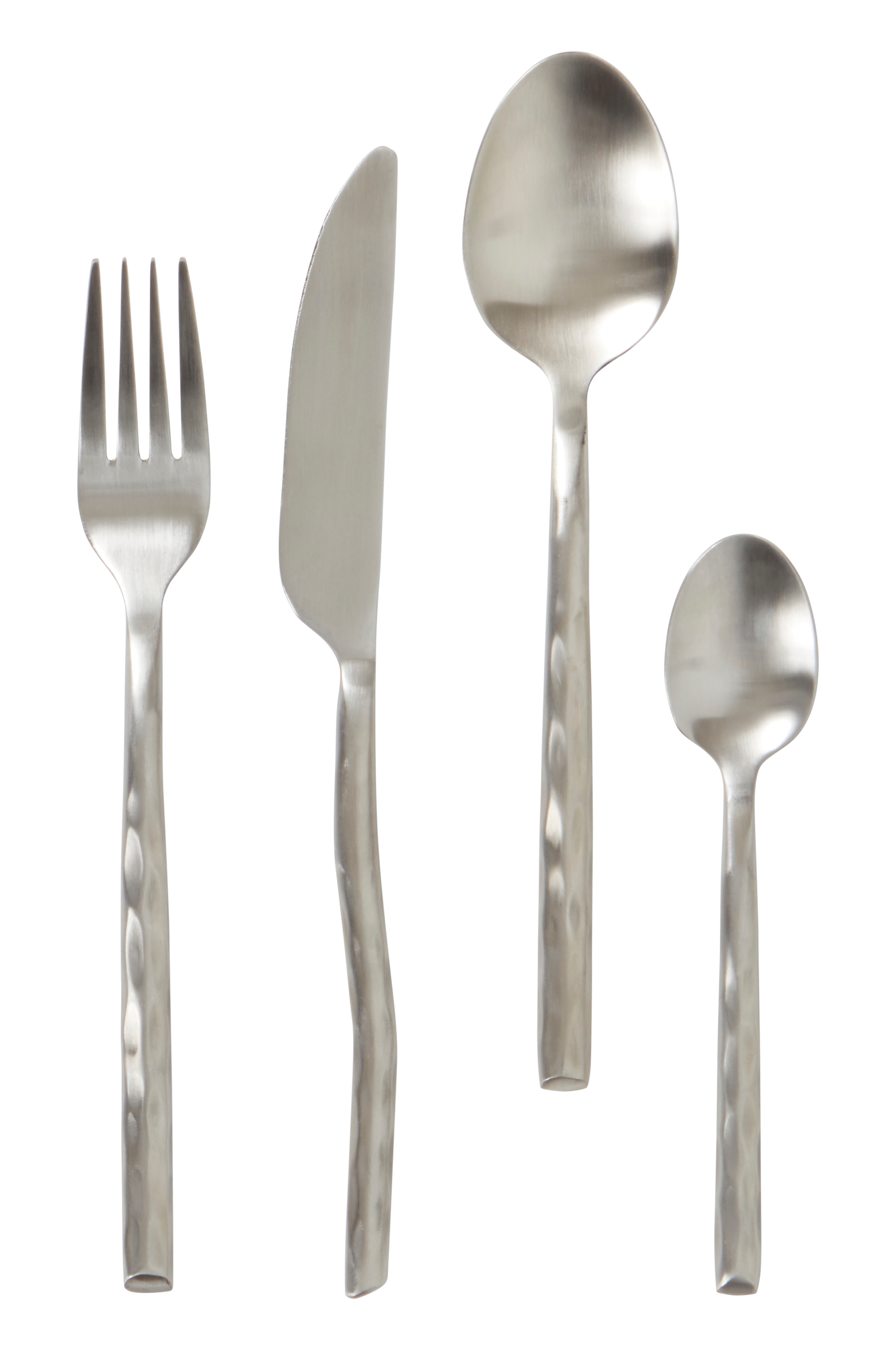 Bestikk i 24 deler av rustfritt stål med matt, lekker finish. Bestikkets grep er effektfullt uregelmessig med en hamret følelse. Bestikket inneholder gaffel, kniv, spiseskje og teskje, 6 av hver. Bestikket LYONEL kommer til å løfte middagsselskapene nye nivåer.