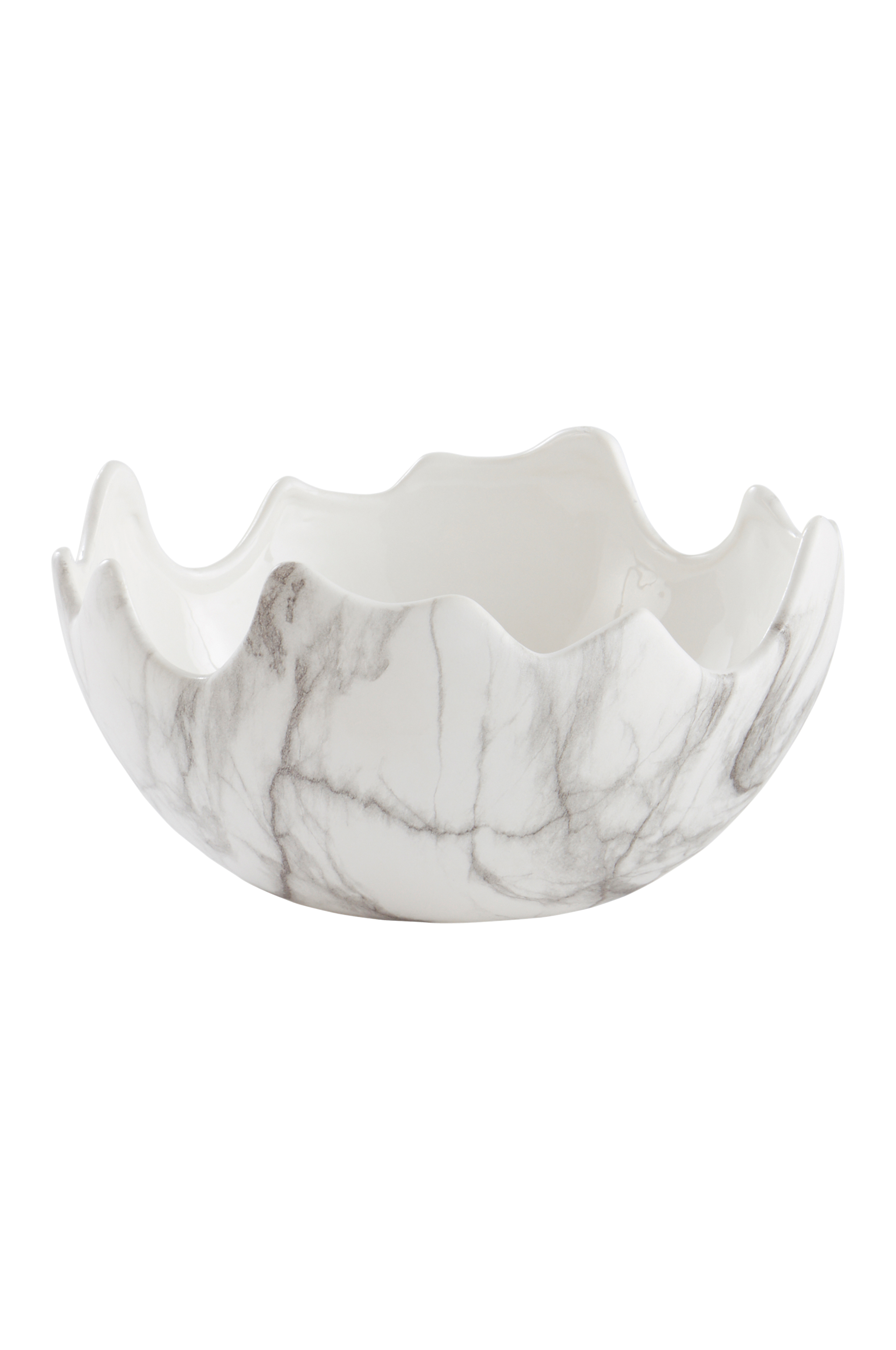 Magisk skål av dolomittporselen med glasur som ligner marmor. Den uregelmessige kanten øverst gjør skålen ekstra vakker. Glasuren er blank, og innsiden har ensfarget glasur. MARBLE er magisk både til salater og som fruktskål.
