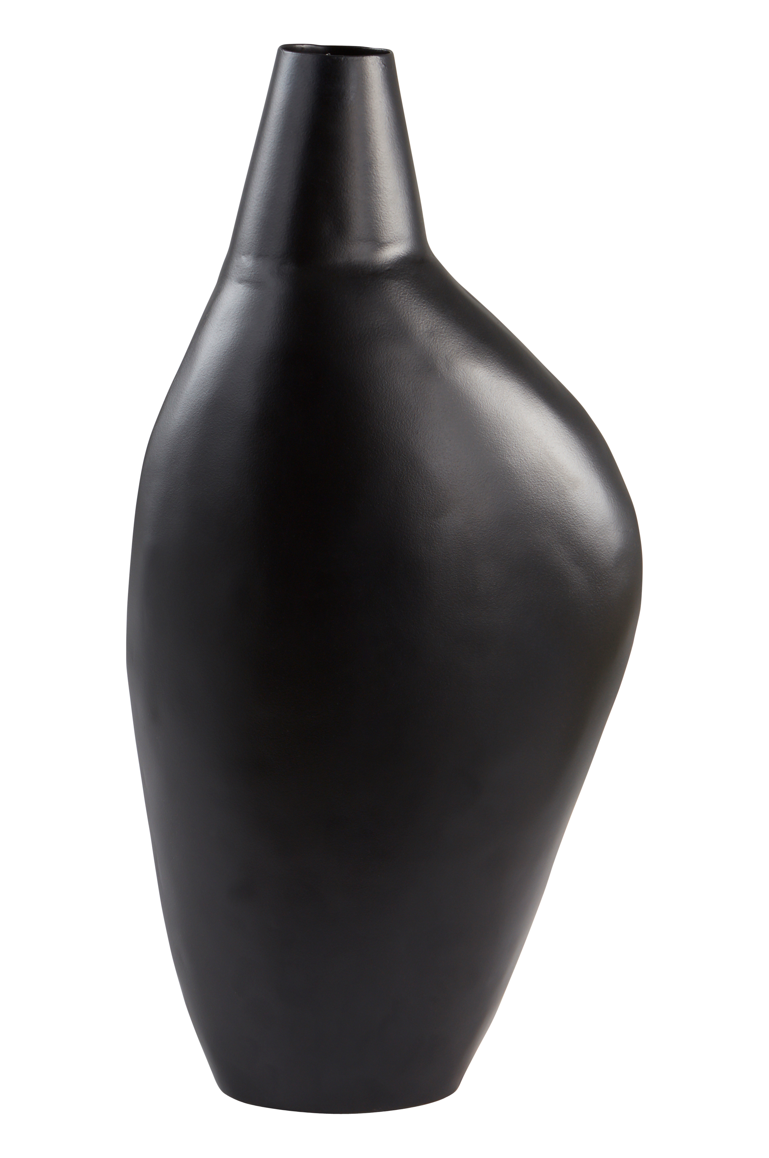 Vase av jern med matt overflate og myk fasong. Vasen er herlig asymmetrisk, og den smale åpningen gjør den vakker til få, høye blomster eller kvister som står rett uten å falle mot siden. Den milde, naturlige fargen gir fokus til vasens innhold.