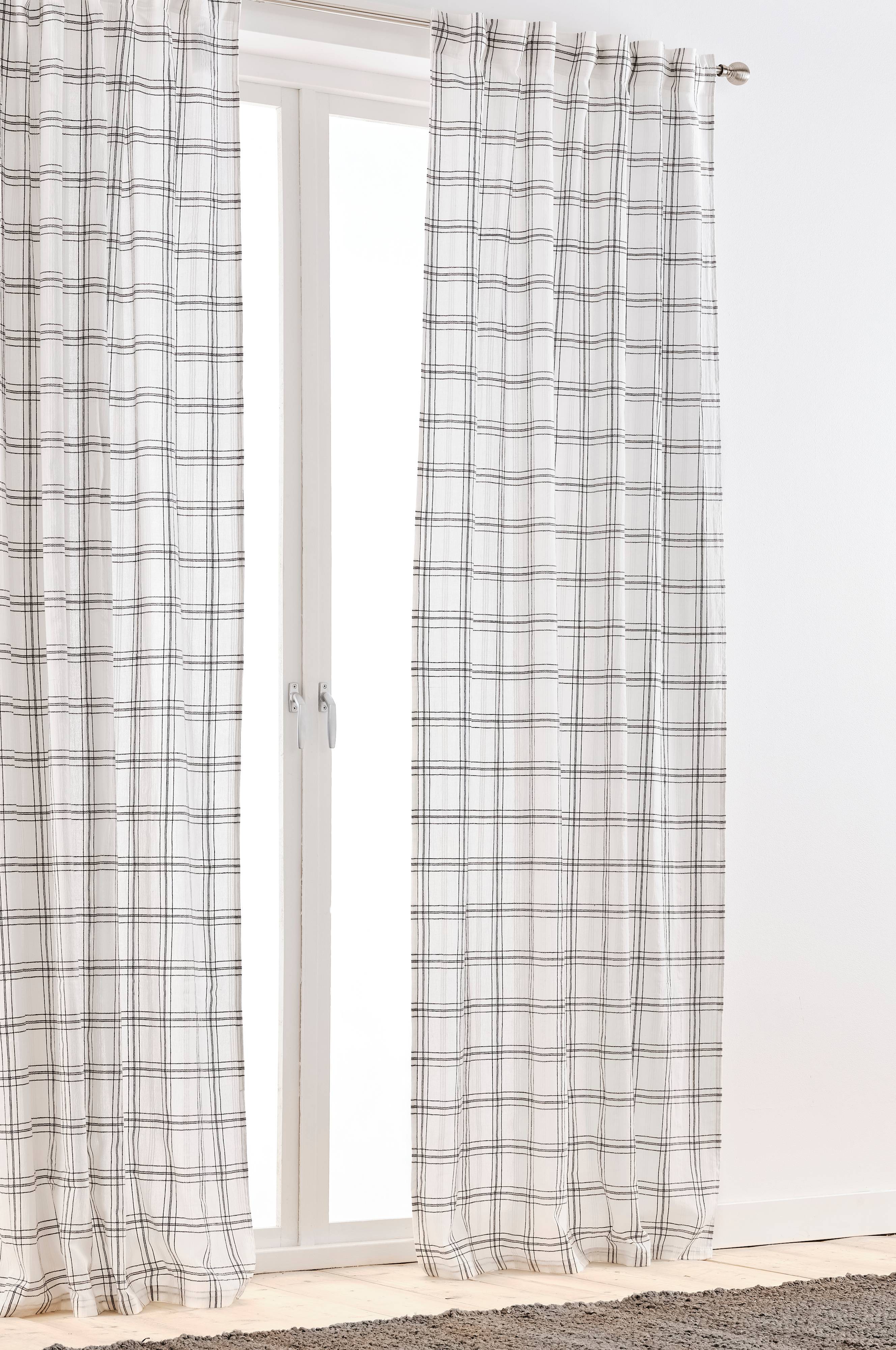 2-pk gardinlengder i bomull med påsydd multifunksjonsbånd. Gardinens klassiske rutemønster gir en hjemmekoselig følelse. Gardinen kan henges opp med fingerkroker, kanal eller skjult hempe.