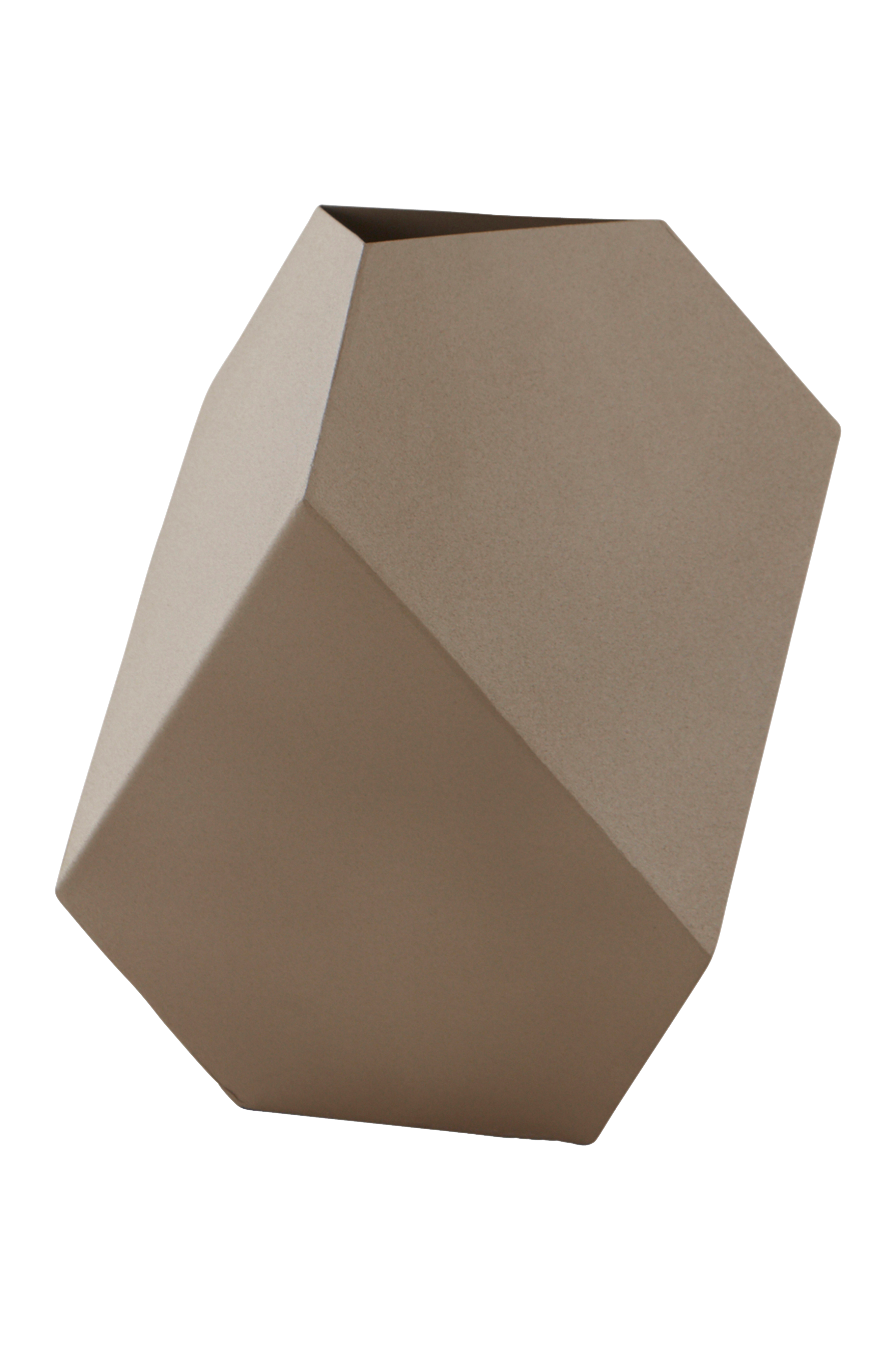 En geometrisk formet vase i mattlakkert metall. Bruk den som den er, eller fyll den med fine planter.
