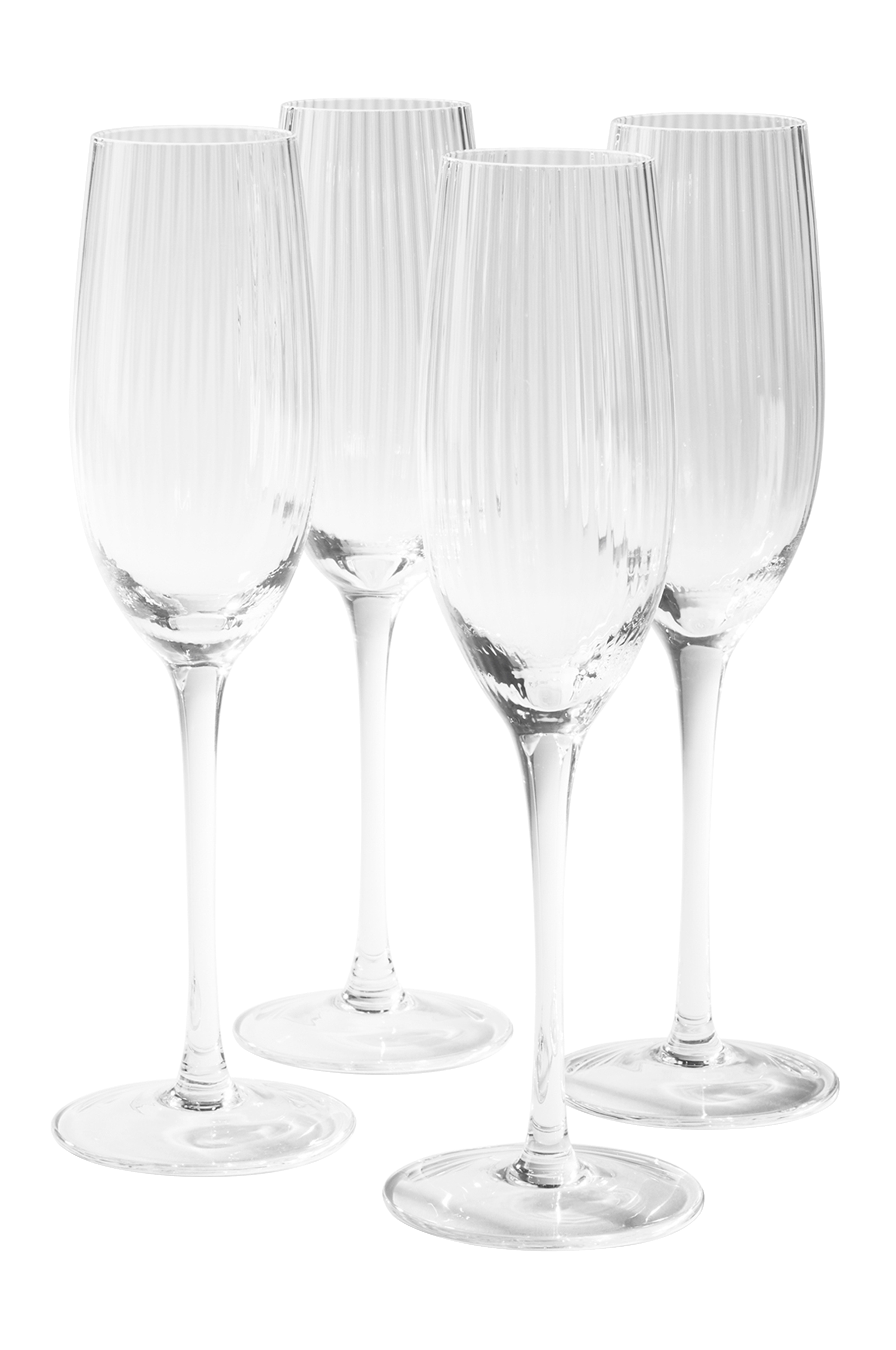 4-pk champagneglass av kadmiumfritt glass. 22,8 cl/glass. MAXIM har en rillet innside som gir et dekorativt og stilrent design. Inviter vennene dine, og skål i vakre champagneglass.