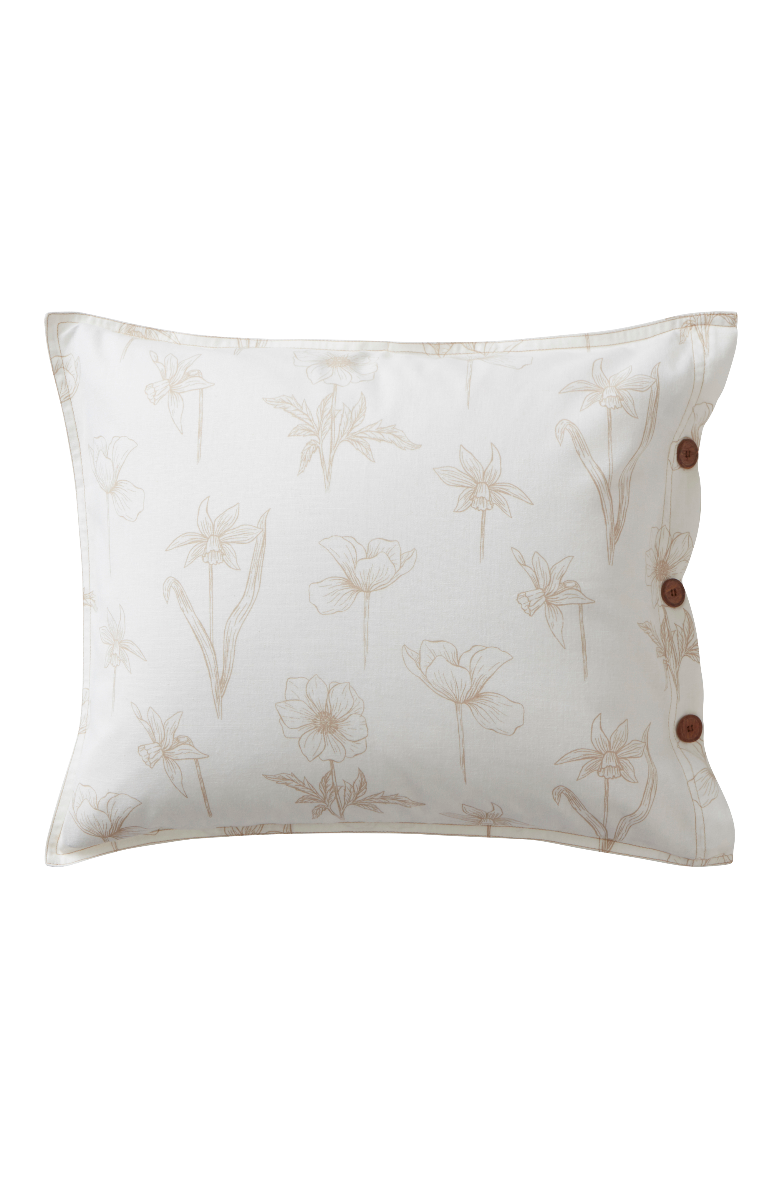 1-pk putevar i fin kvalitet av bomull og lin. Den deilige kvaliteten forener bomullens mykhet med linets naturlige varme. Stoffet er vasket for å bli ekstra komfortabelt. MEADOW er vendbart og har lett blomstertrykk med herlig vårfølelse på den ene siden, den andre siden er ensfarget. Putevaret har dobbeltsøm rundt, og sømmene er dekorative i seg selv da de matcher fargen på trykket. Plastknapper som minner om tre for lukking. Trådtetthet på 80 tc. (Trådtettheten forteller om antallet tråder, thread counts, pr. kvadrattomme i et stoff. Jo høyere trådtetthet, desto høyere kvalitet. Unntaket er lin som ofte veves løsere for å få den riktige følelsen.)