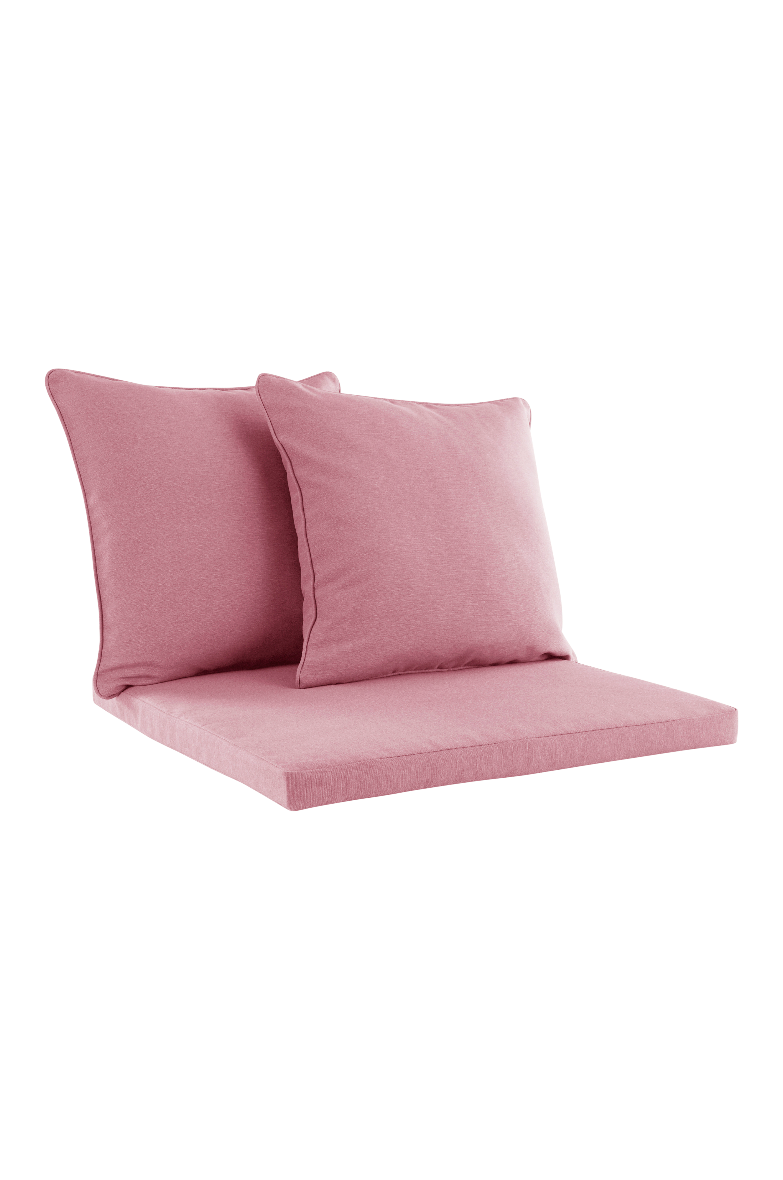 Putesett til utemøbler. Settet inneholder en sittepute og to puter. Settet er trukket i bomull, polyester og resirkulert fiber. Både pute og puter har en innvendig pute med skumfyll. Trekket er avtakbart og har glidelås. Puten passer til MENTON lenestol, MENTON krakk/bord og lenestolen i MENTON loungemøbler.