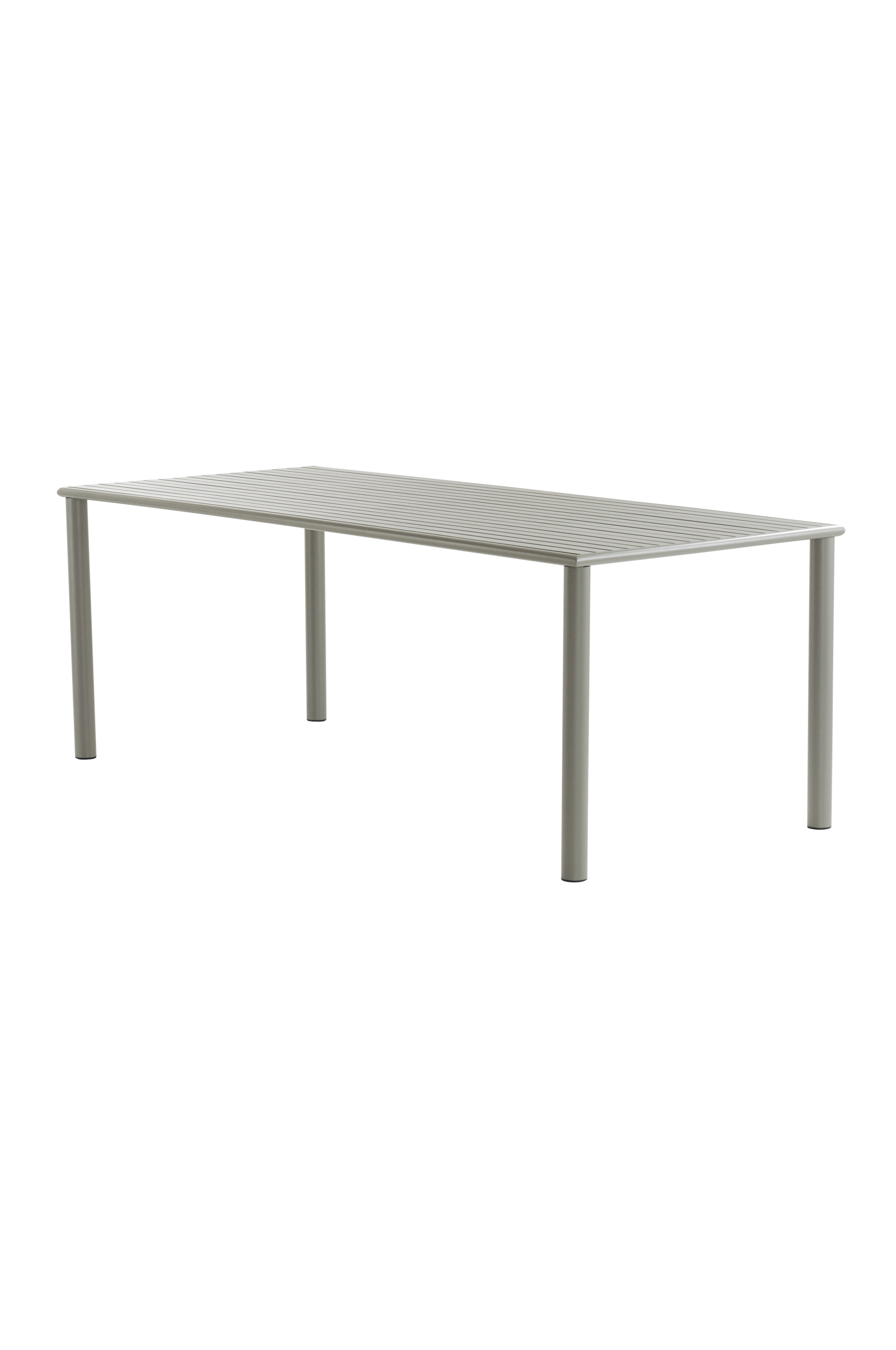 Spisebord i pulverlakkert aluminium med en matt overflate som ikke blender i sollyset. MENTON kan stå utendørs, og det gjør utelivet enklere. Du slipper å bære så snart du vil sitte ute. Møblene er pene og gir en fin følelse på terrassen eller uteplassen. Lav vekt.