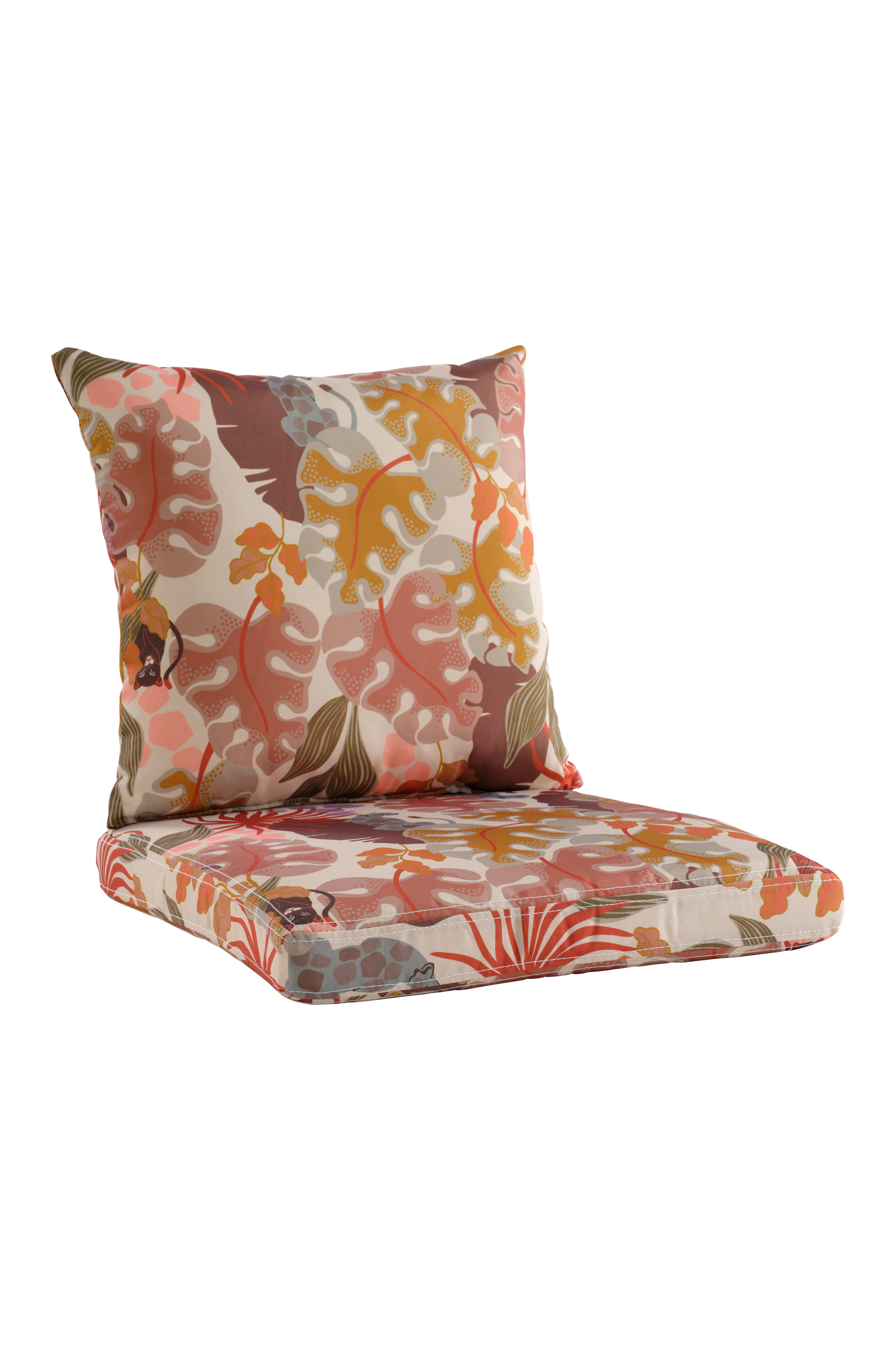 Kan vaskes i maskin på 40°C. Ikke bruk blekemiddel. Skal ikke i tørketrommel. Skal ikke strykes. Må ikke tørrenses. Oppbevar utendørsputen på et tørt sted, godt beskyttet mot fuktighet og regn når den ikke er i bruk.