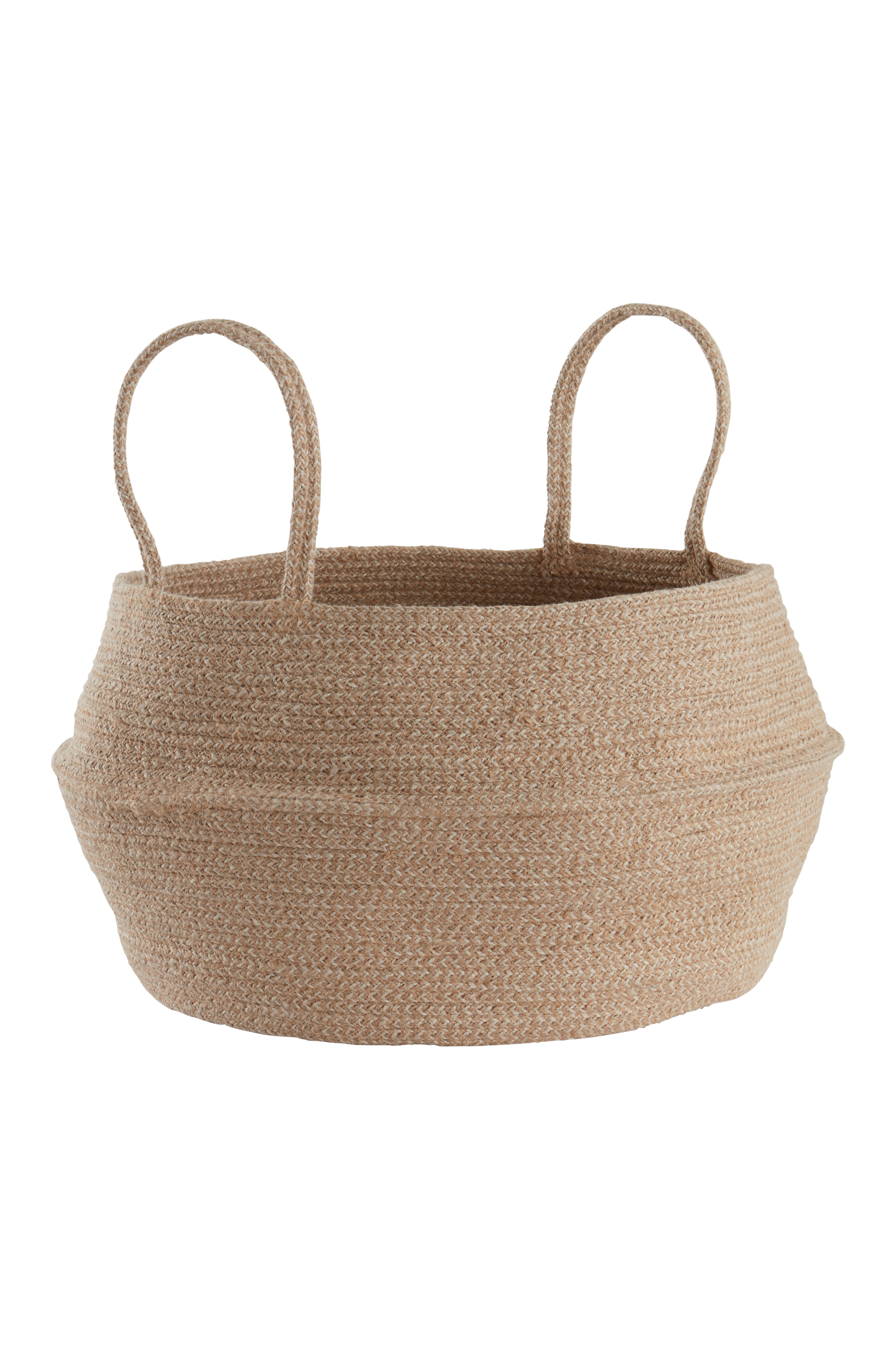 Håndflettet kurv i jute, et naturmateriale som gir en rustikk og landlig følelse. Kurven er romslig og har to håndtak, bruksområdene er mange. Hver kurv er flettet for hånd. Det fine håndverket gjør hver kurv unik.