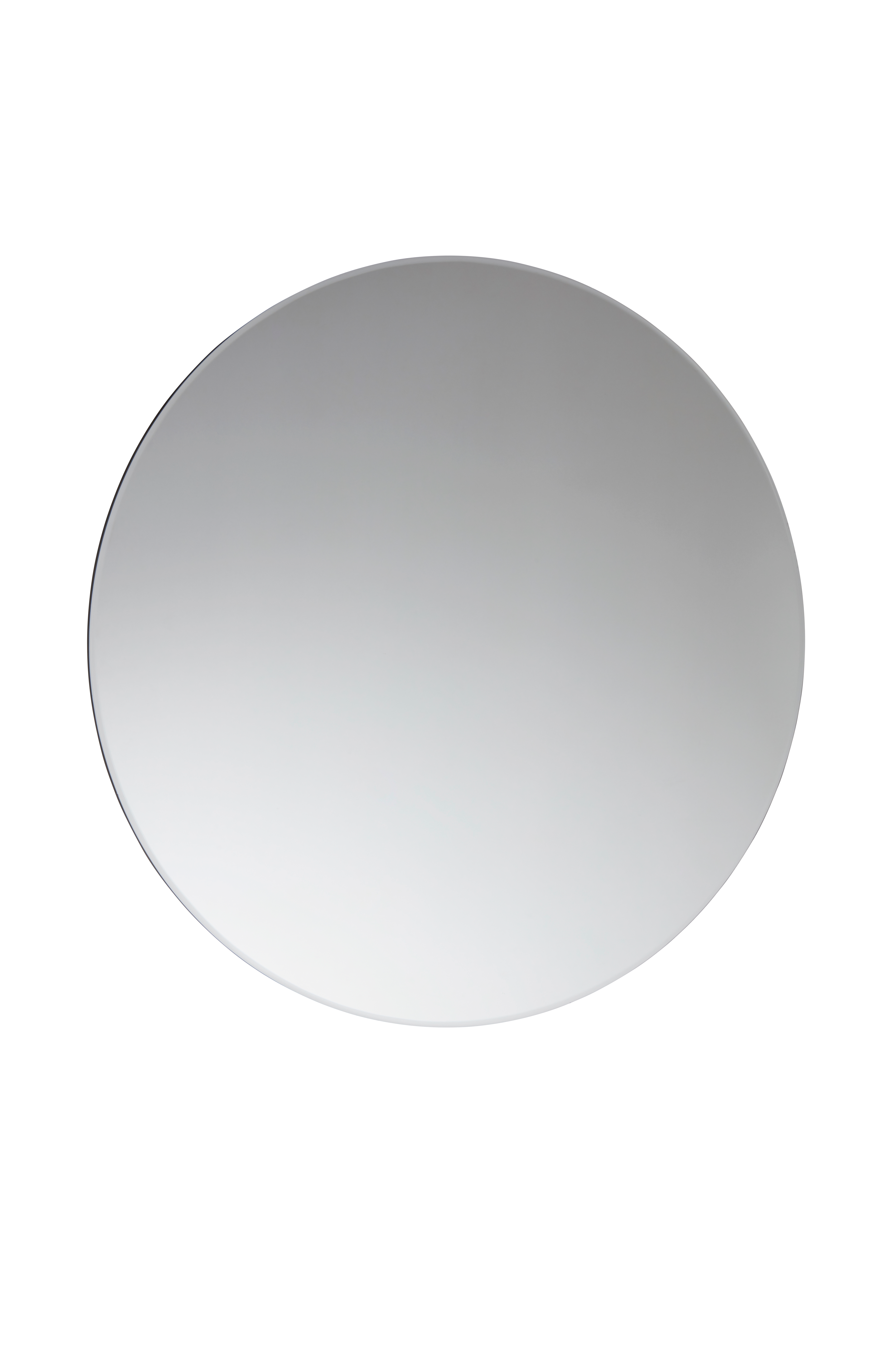 Rundt speil med tynn, fasettslipt kant. Svart bakside i MDF.