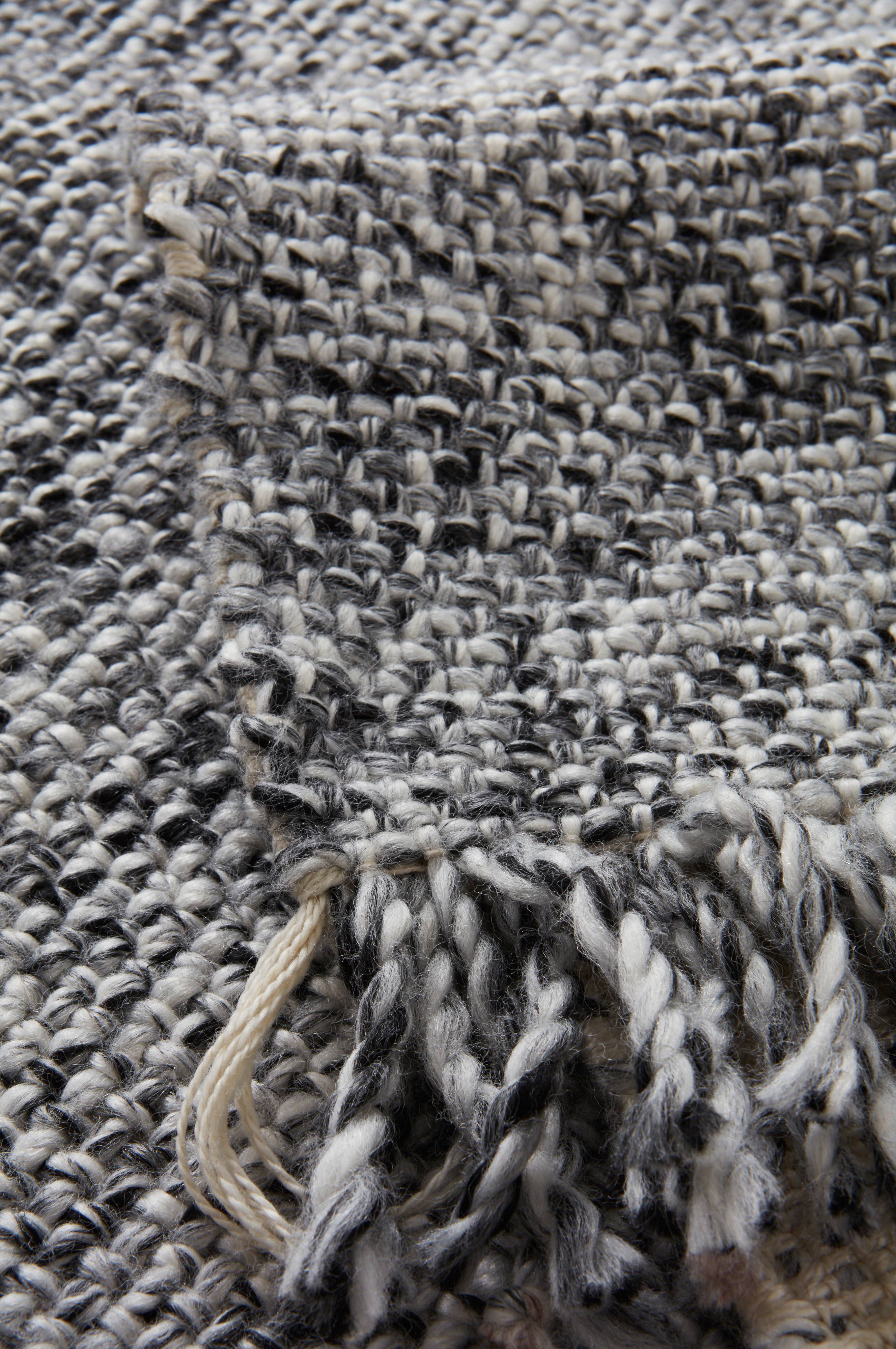 Glattvevd teppe som er produsert av gjenvunnet polyester. Vevteknikken gir fin tekstur og melert effekt. Teppet er behagelig å gå på, og har alle egenskapene et innendørsteppe skal ha. Det kan også brukes utendørs. Det tåler å bli vått uten å mugne, en fantastisk fordel hos materialet. Frynselengde 5 cm. Tykkelse 0,7 cm. 2300 g/m².