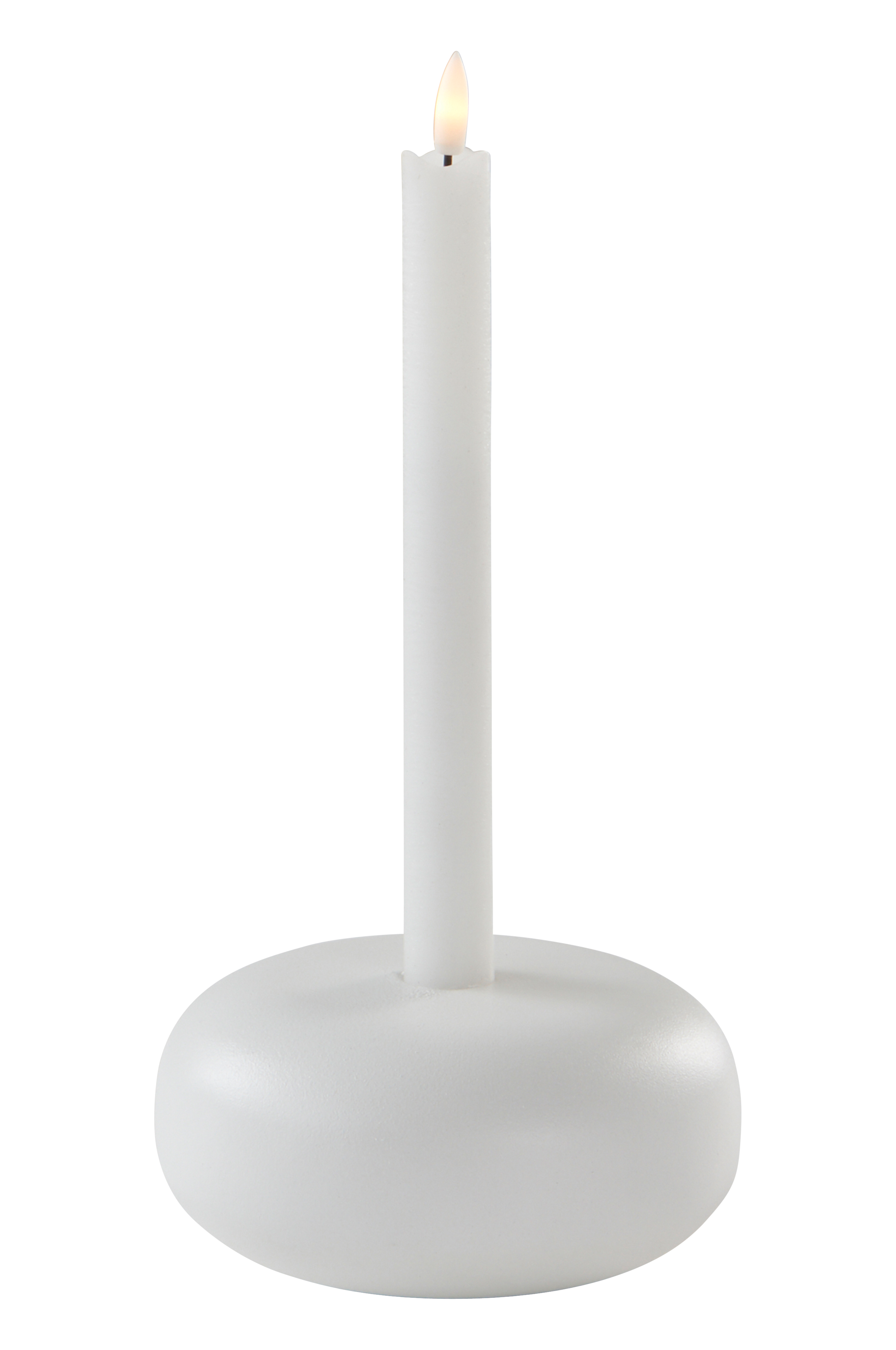 Lysestake i aluminium med farget lakk og lett tekstur. Lysestaken er stilren, rund og enkel. MORNINGSTAR er dessuten et brannsikkert valg.