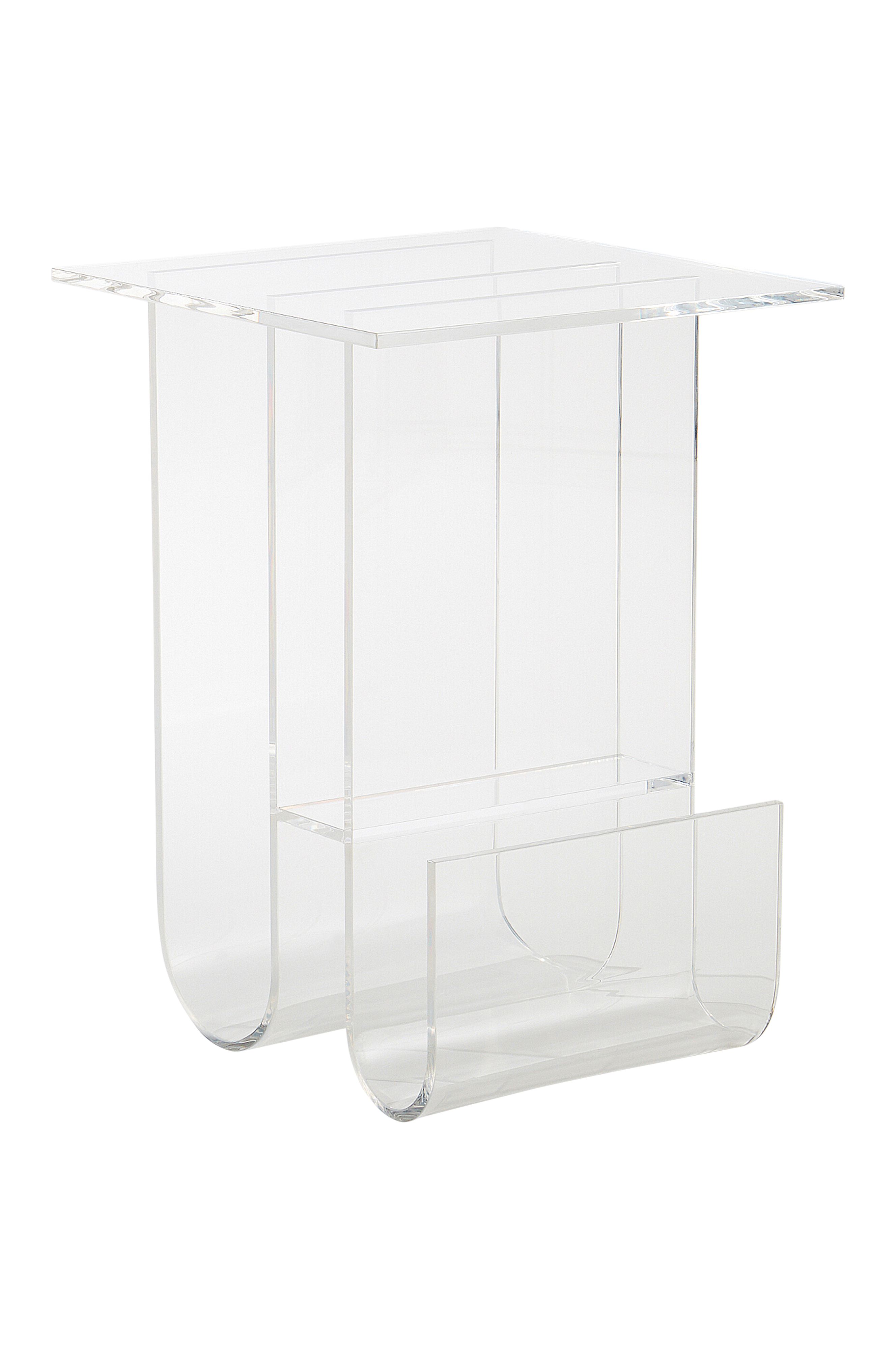 Sidebord av akrylglass. Det lille bordet har lekker form med myke kurver og futuristisk følelse. MORRISON har fleksibel bruk og passer som sidebord ved sofaen, nattbord eller entrebord med litt plass for oppbevaring hvis ønskelig. Fargevalgene er herlig forfriskende.