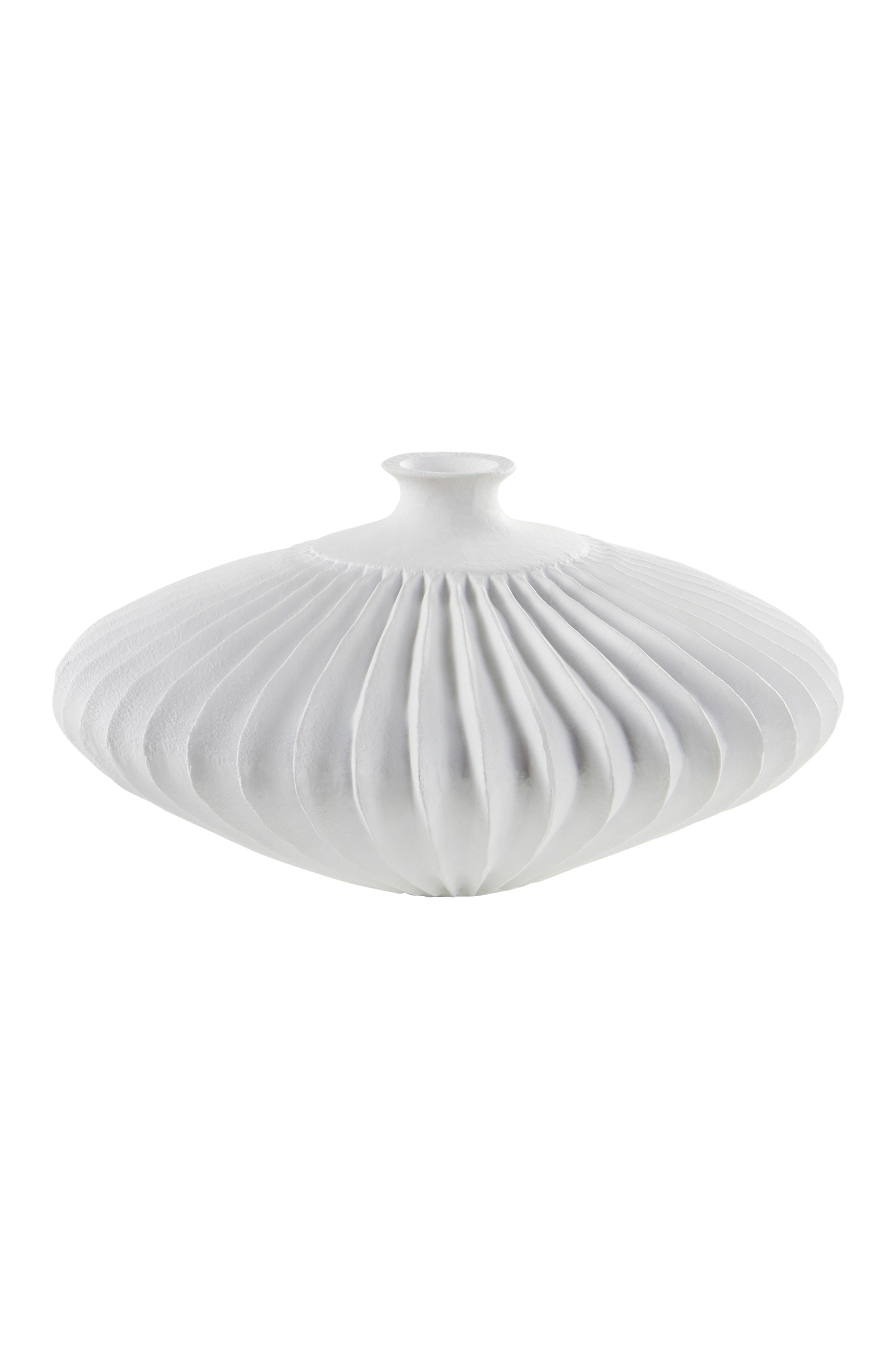 Dekorvase av polyresin med matt overflate og herlig tyngde. Vasen er pent riflet og passer fint for en tørket kvist. Obs. Materialet kan slippe gjennom fukt.