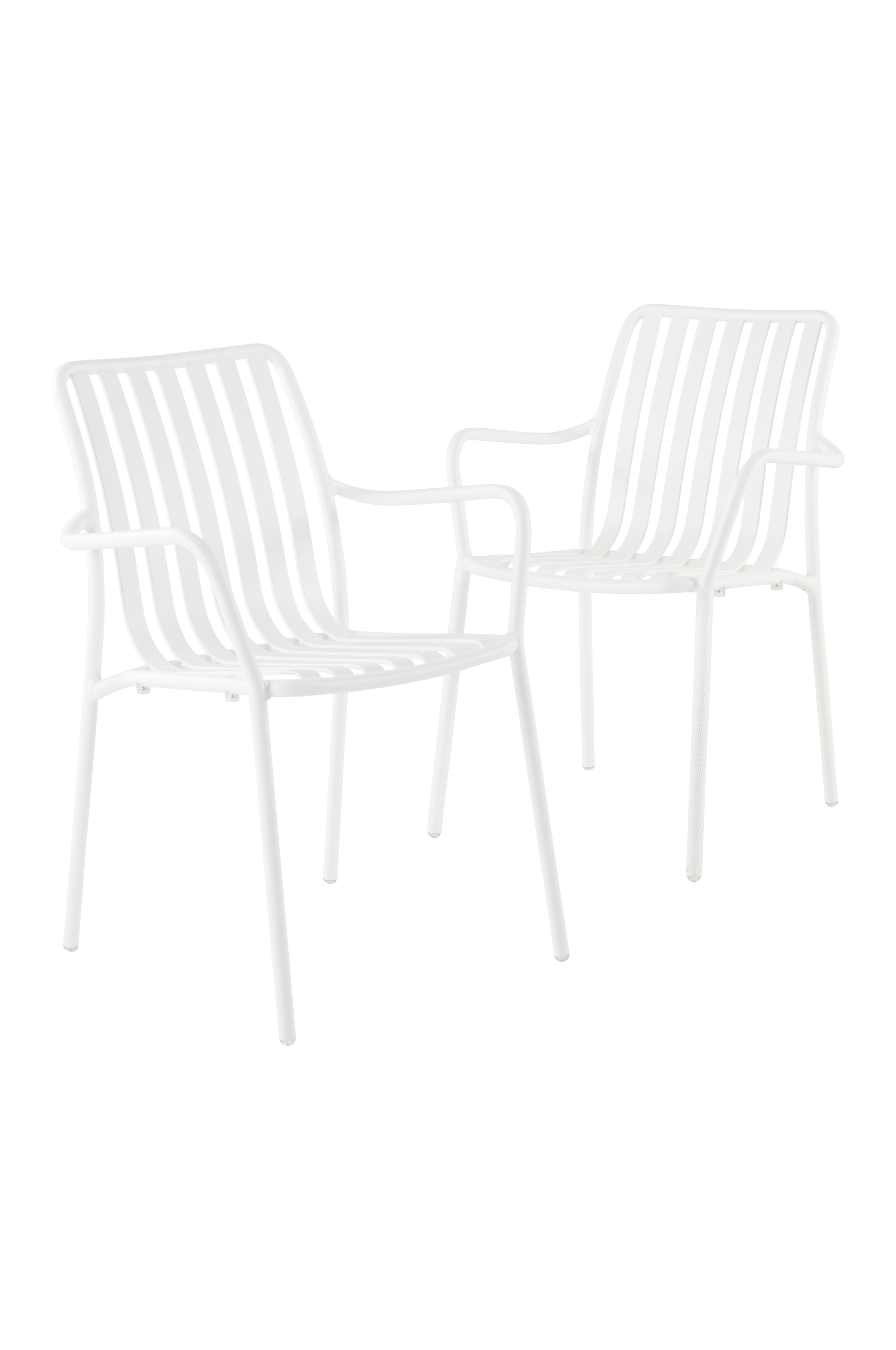 2-pk armstoler av aluminium med pulverlakkert finish. NANTERRE er en lett og pen armstol med myke linjer. Komfortabel å sitte i og enkel å flytte. Aluminium er et lett materiale, så vekten er lav. NANTERRE tåler å stå utendørs. Aluminium ruster ikke, og er enkelt å tørke av.